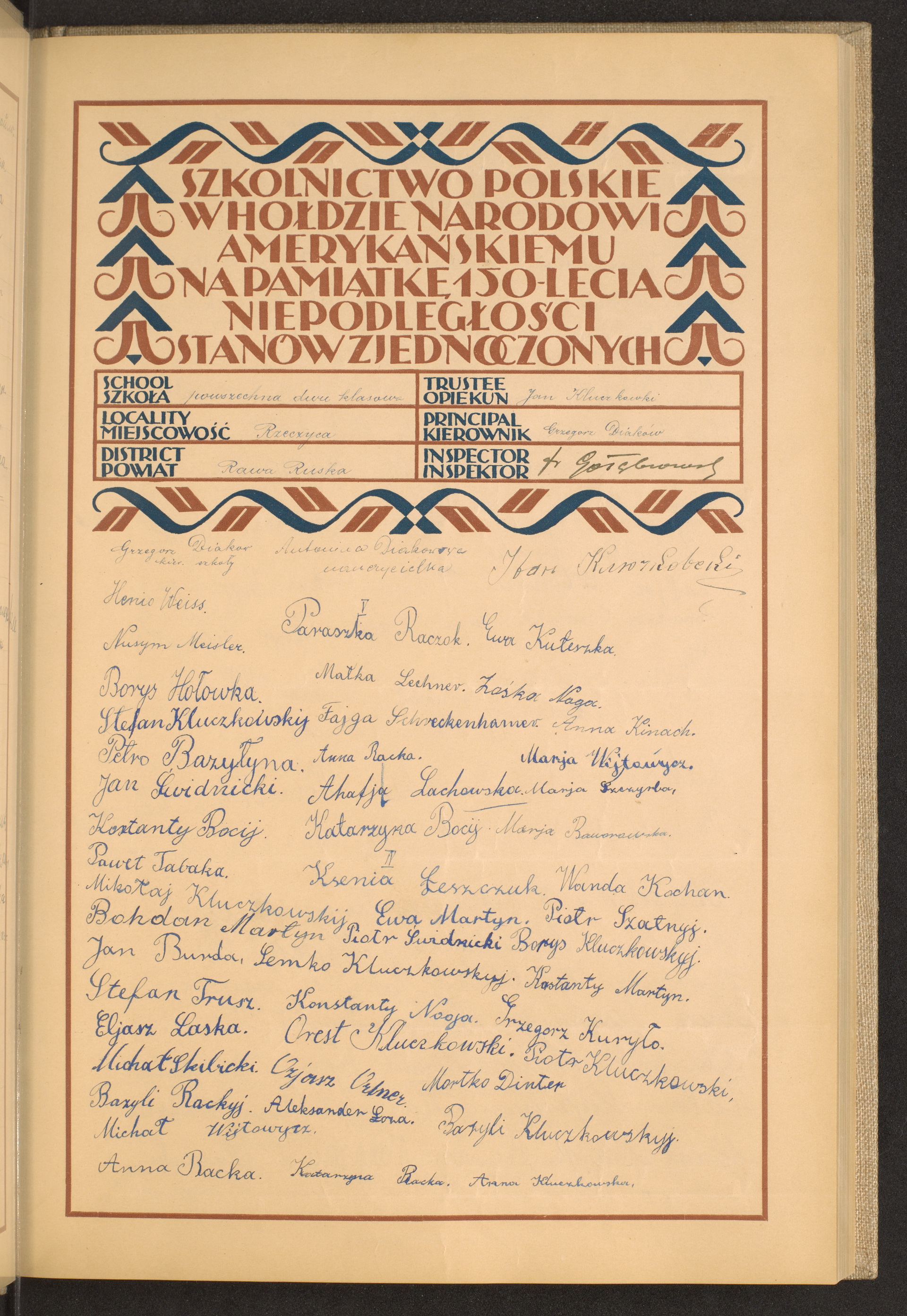 szkoły powszechne i gimnazja; powiaty Rawa Ruska-Rudki