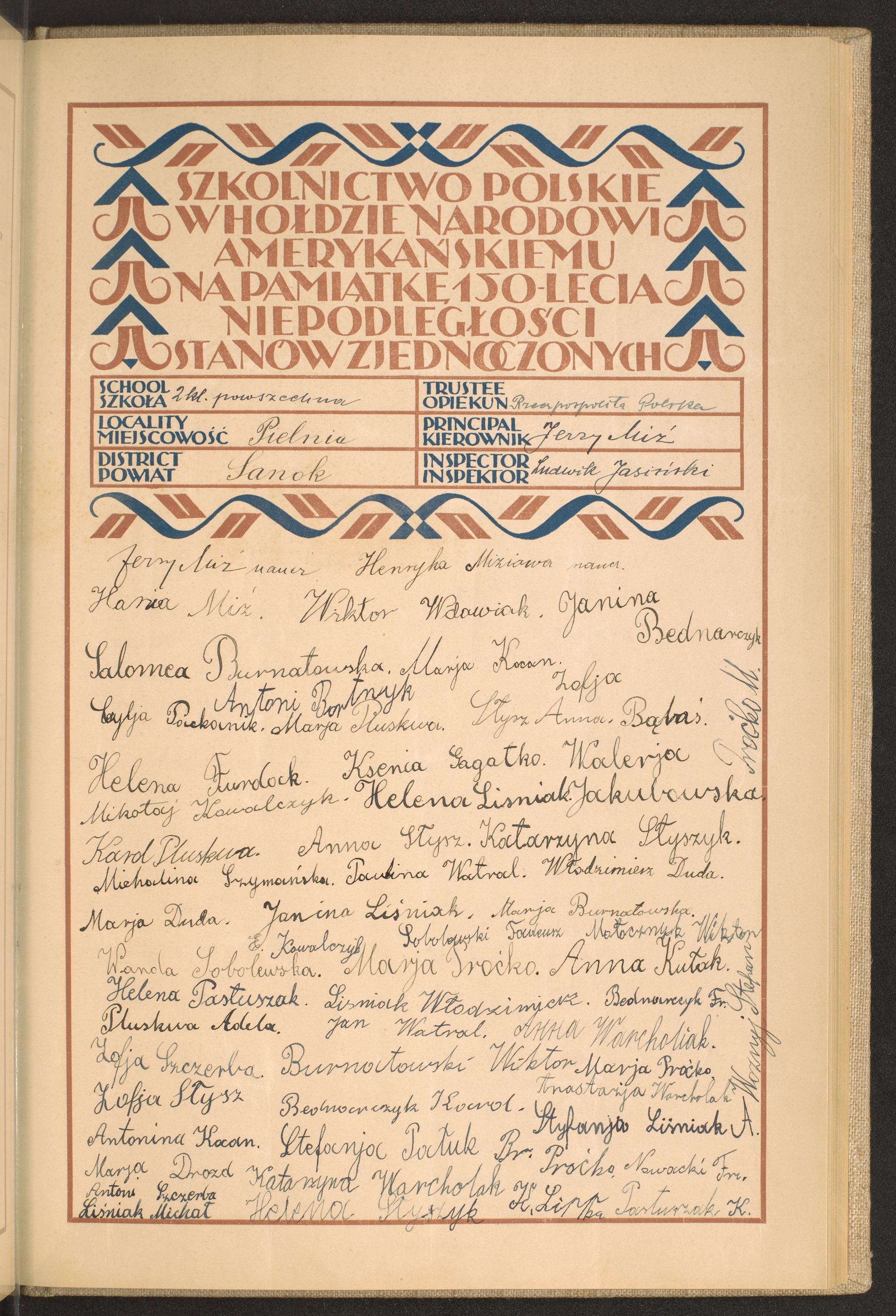 szkoły powszechne i gimnazja; powiaty Sanok-Siedlce