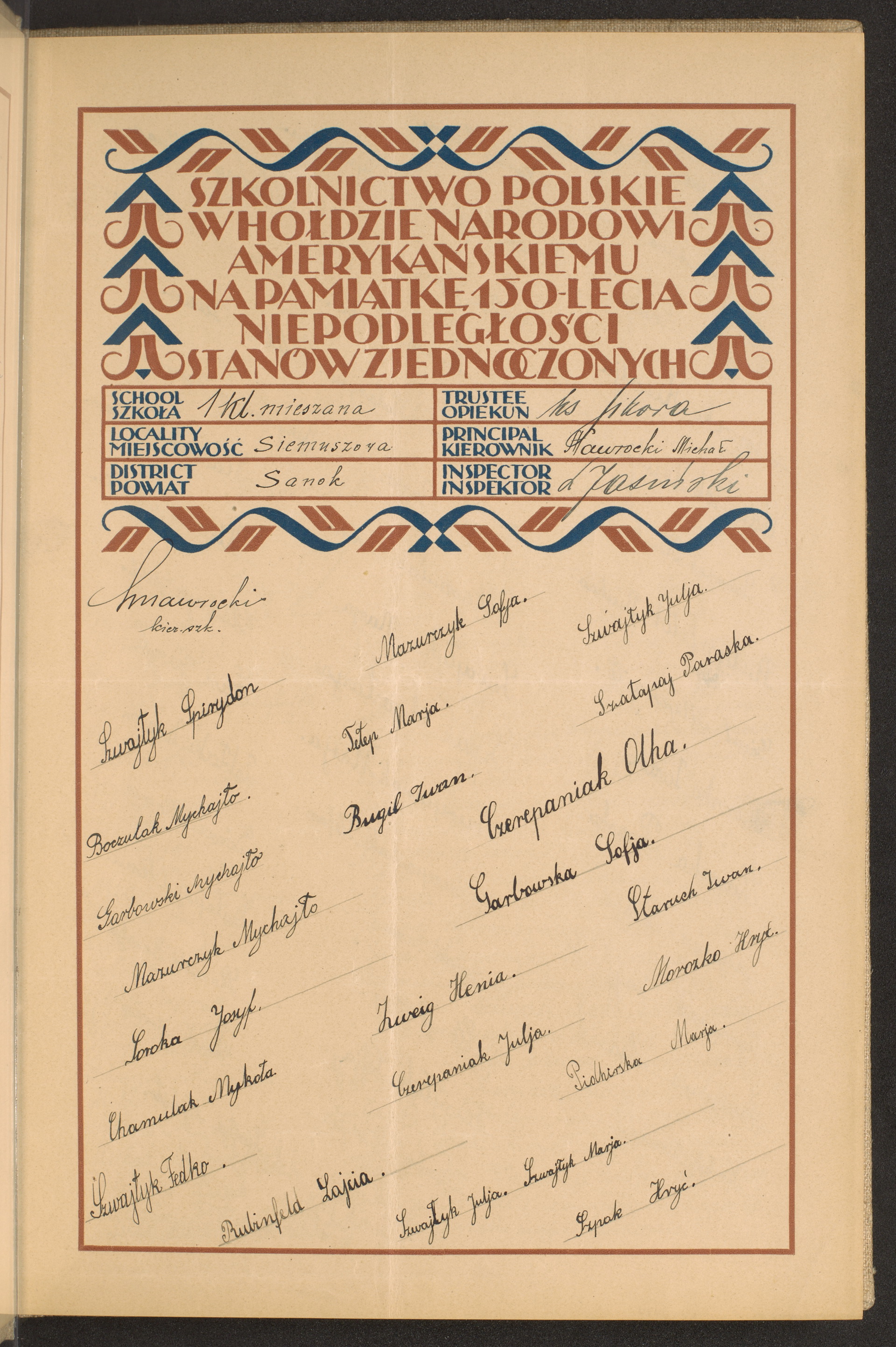 szkoły powszechne i gimnazja; powiaty Sanok-Siedlce