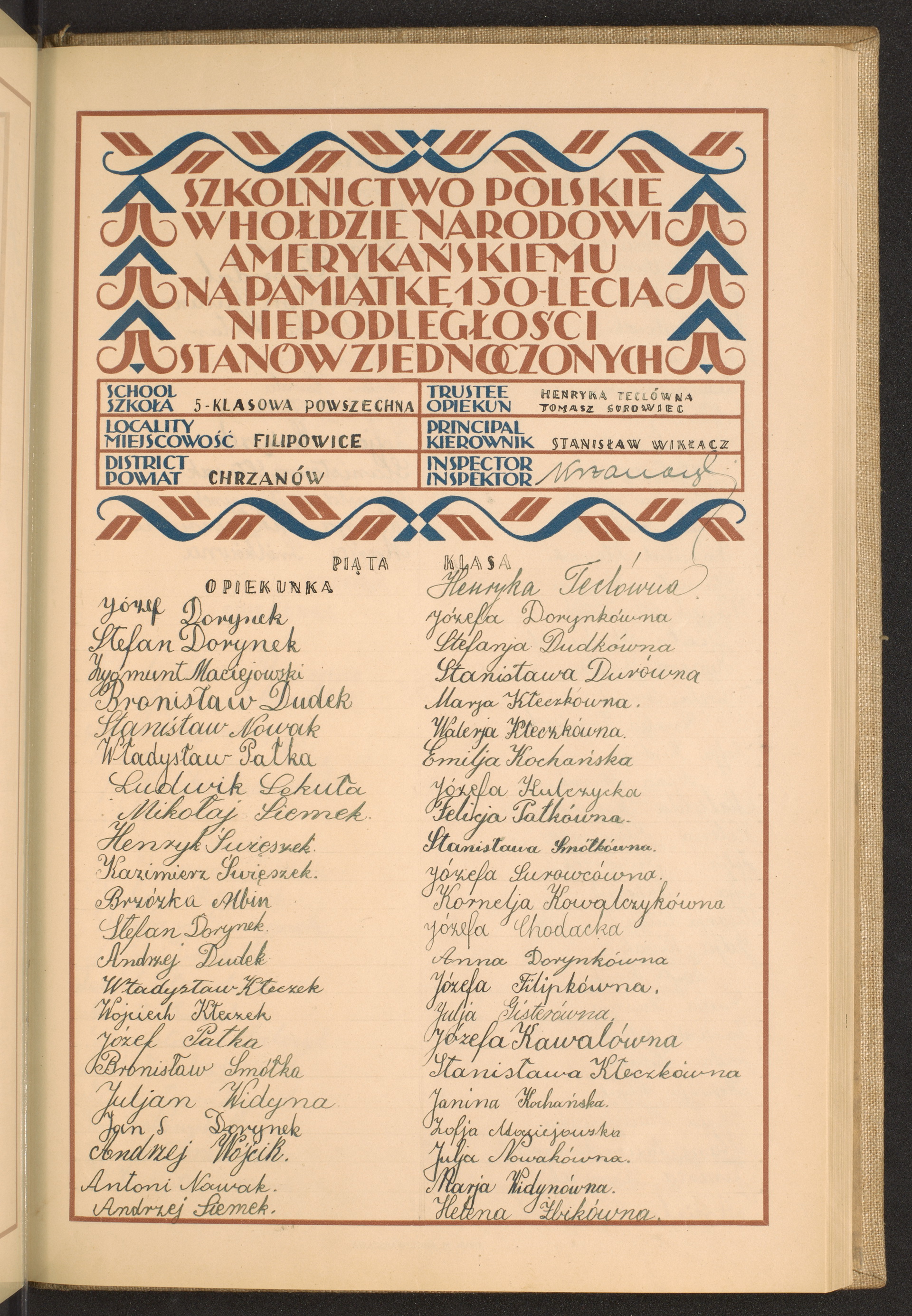 szkoły powszechne i gimnazja; powiaty Chojnice-Chrzanów