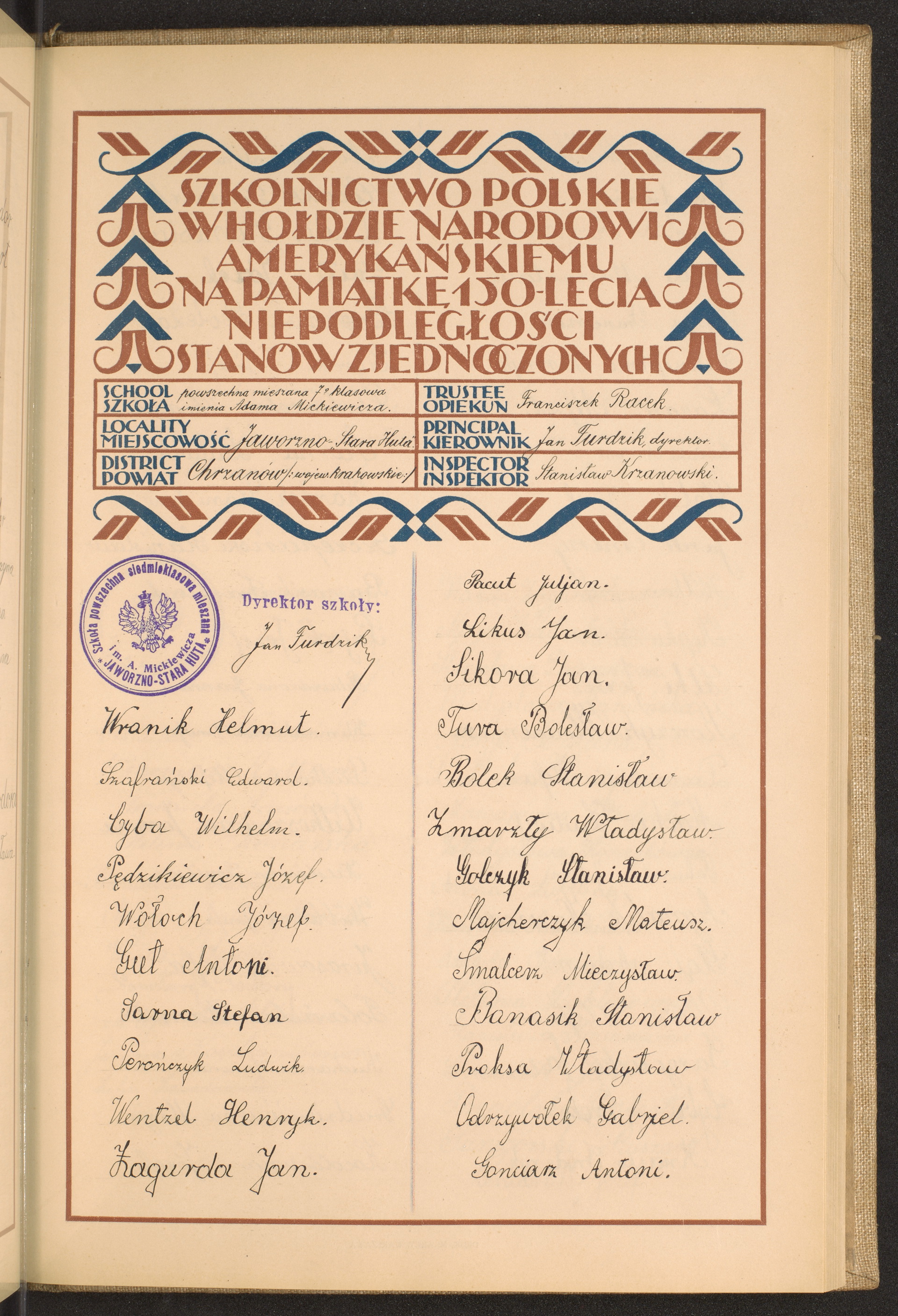 mieszana siedmioklasowa szkoła powszechna im. A. Mickiewicza