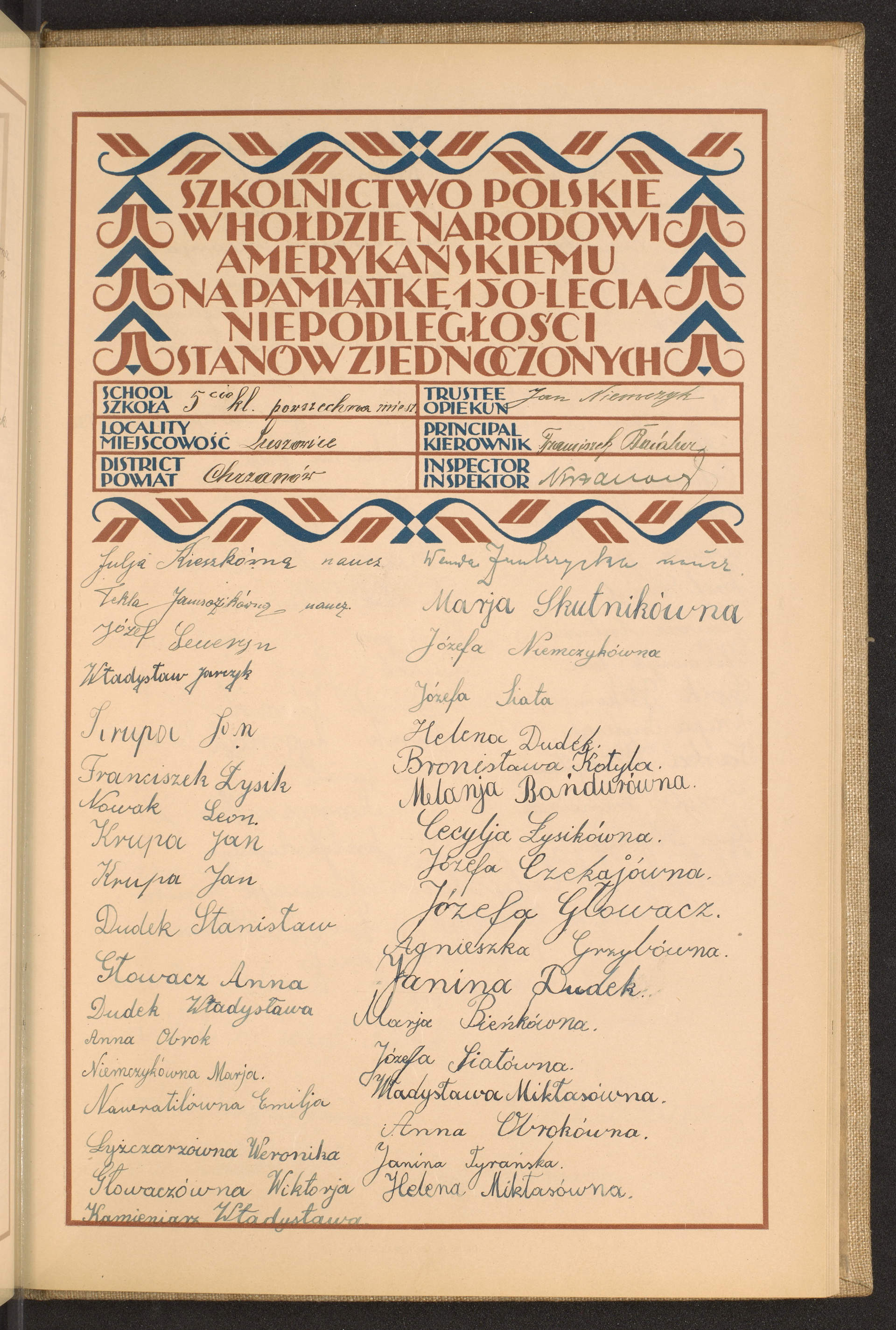 szkoły powszechne i gimnazja; powiaty Chojnice-Chrzanów