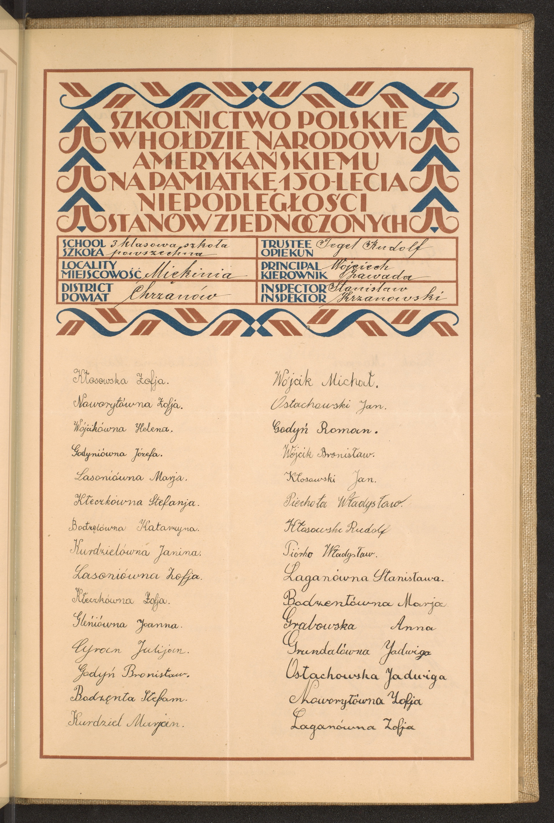 szkoły powszechne i gimnazja; powiaty Chojnice-Chrzanów