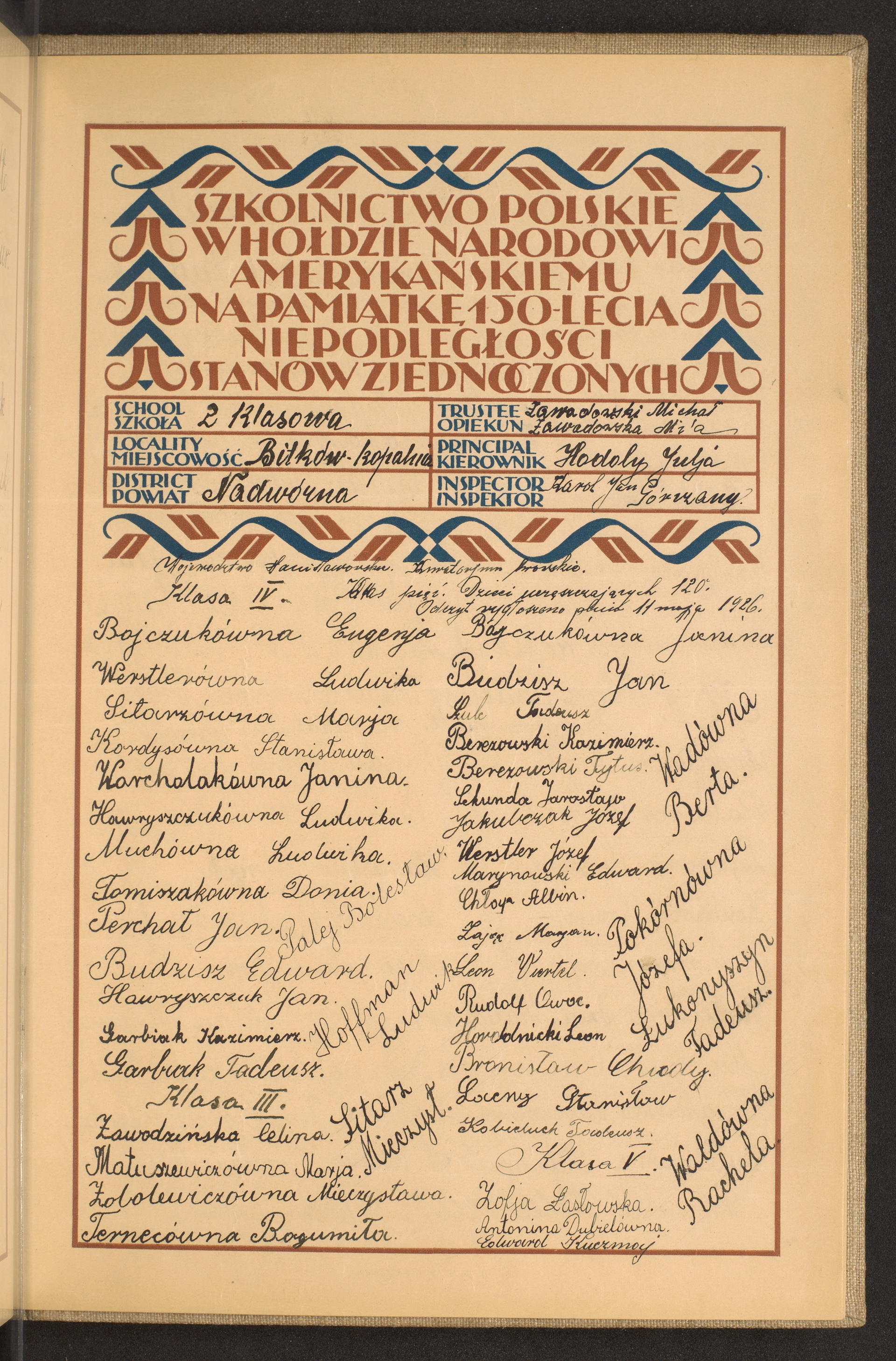 szkoły powszechne i gimnazja; powiaty Mława-Nadwórna