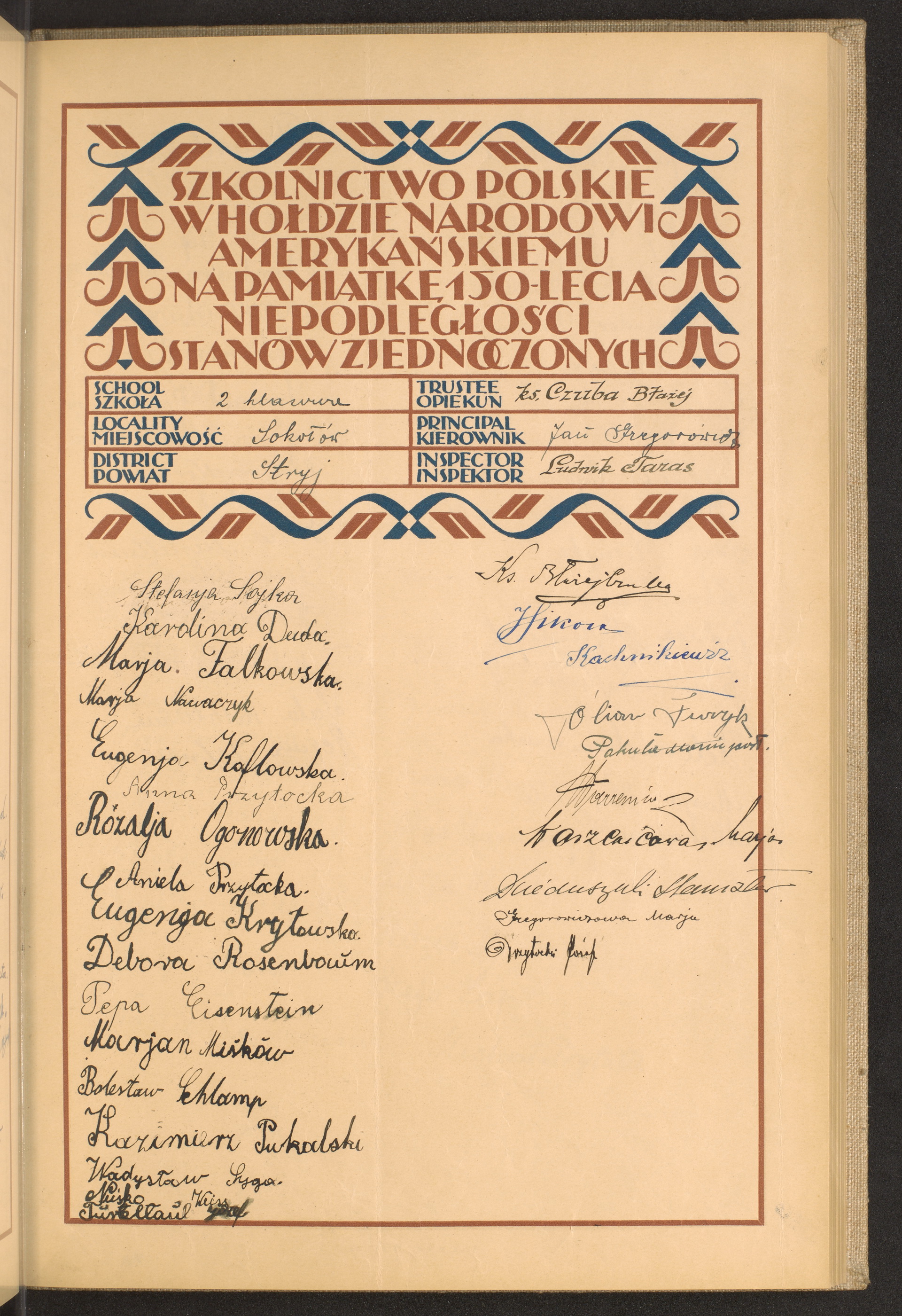 szkoły powszechne i gimnazja; powiaty Stryj-Strzyżów