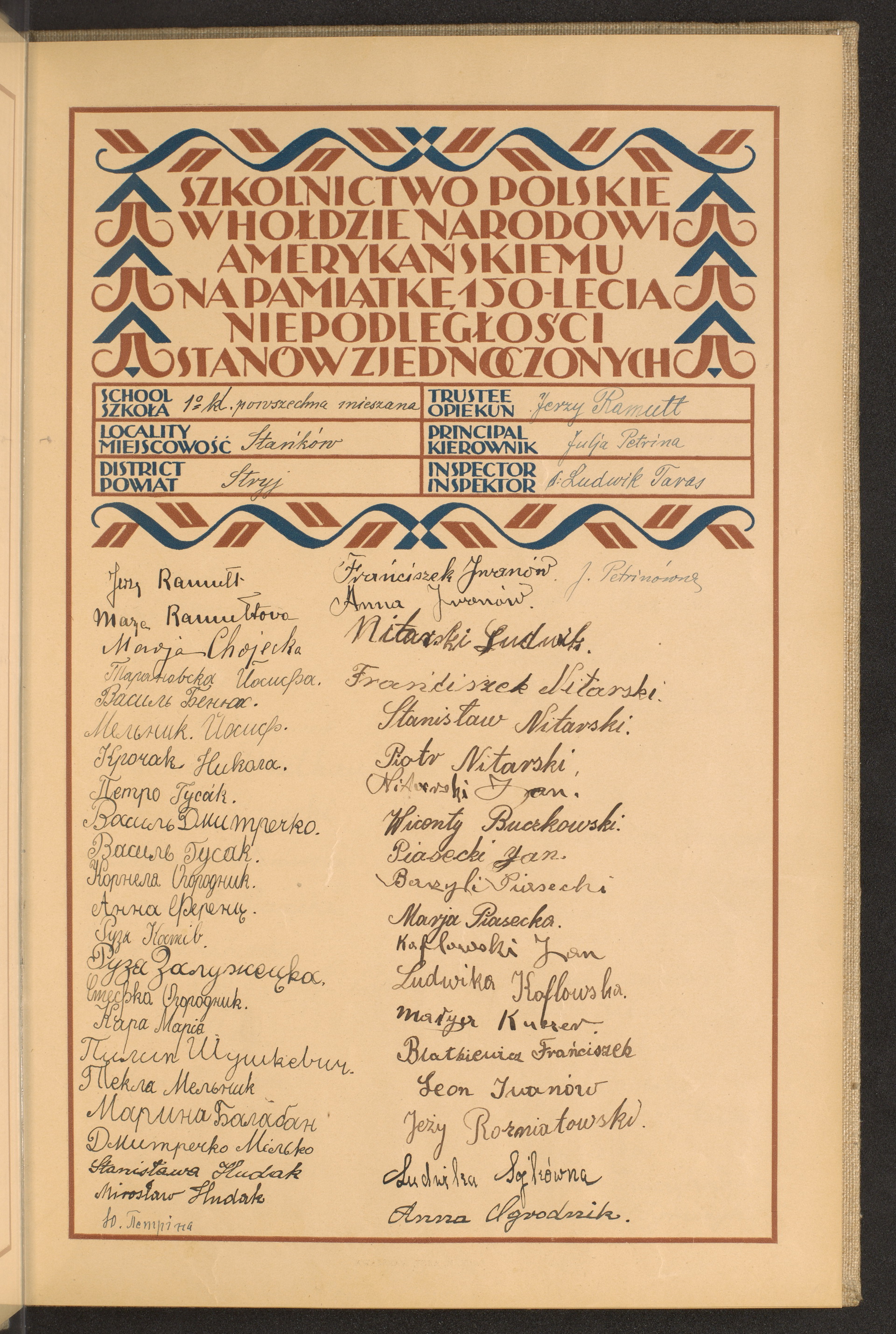 szkoły powszechne i gimnazja; powiaty Stryj-Strzyżów