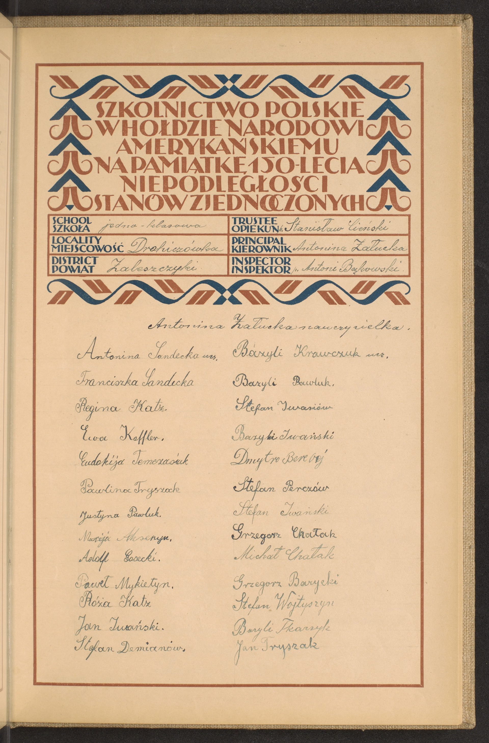 szkoły powszechne i gimnazja; powiaty Wyrzysk-Zaleszczyki