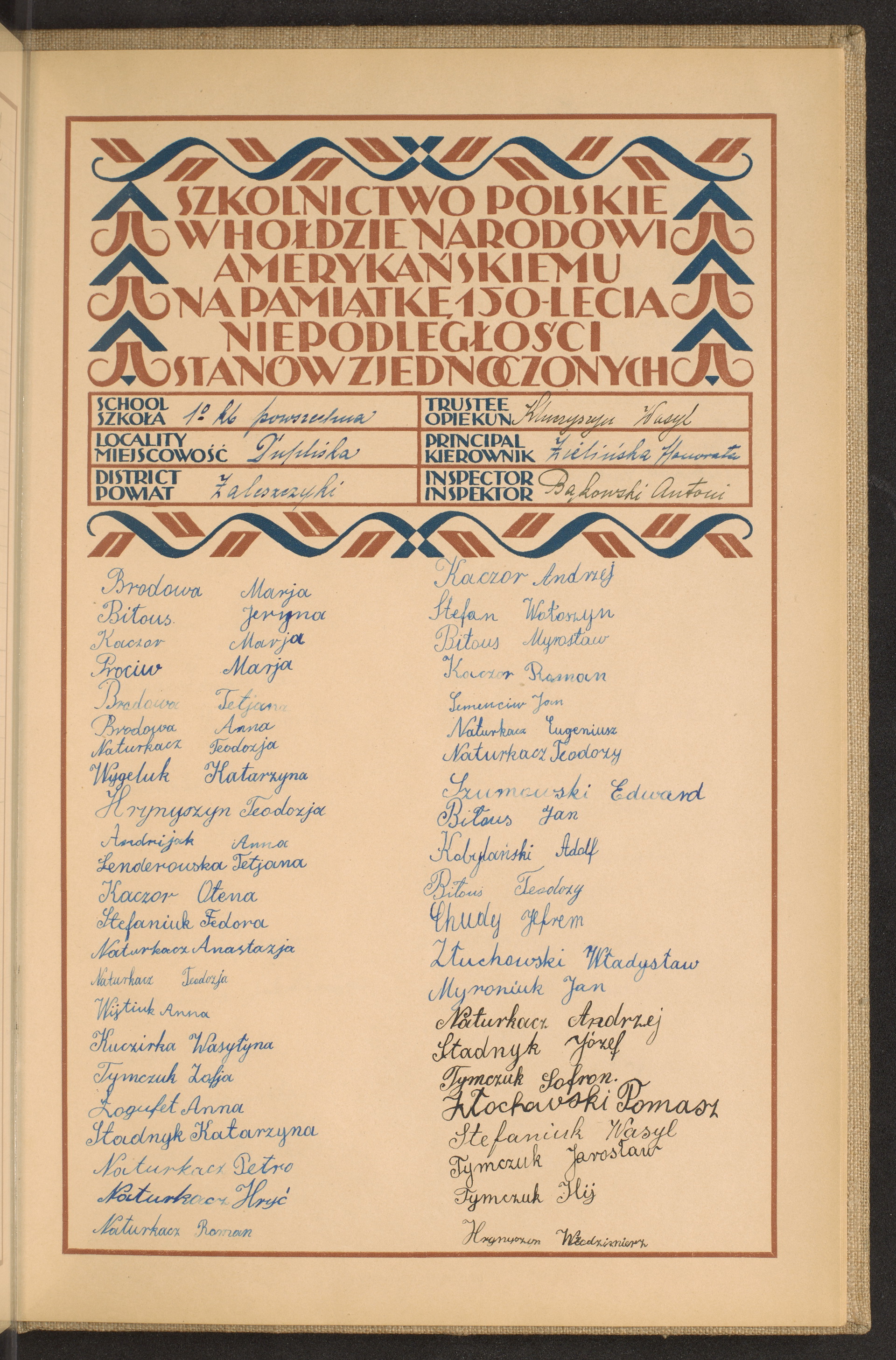 szkoły powszechne i gimnazja; powiaty Wyrzysk-Zaleszczyki