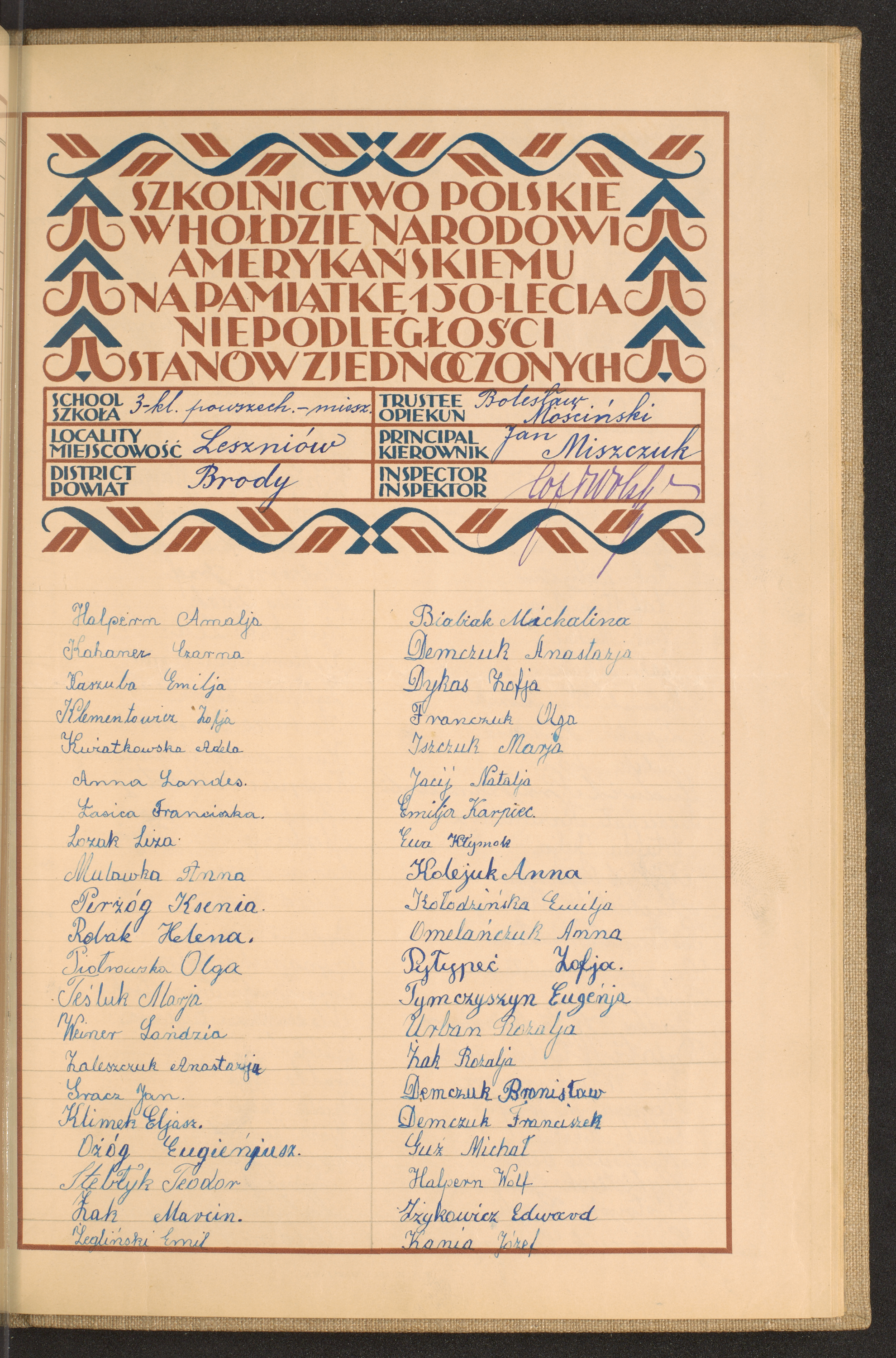 Mieszana trzyklasowa szkoła powszechna w Leszniowie