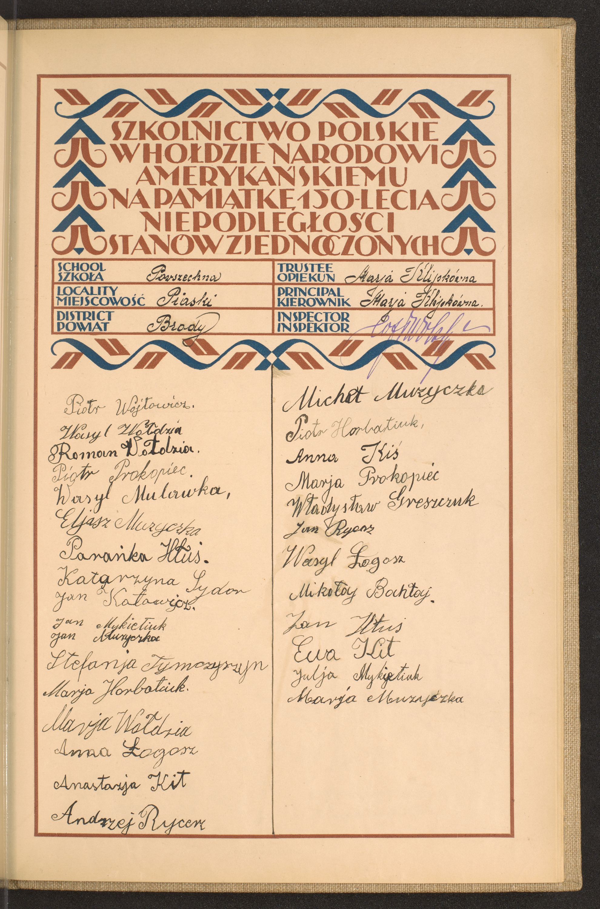 szkoły powszechne i gimnazja; powiaty Brasław-Brzesko