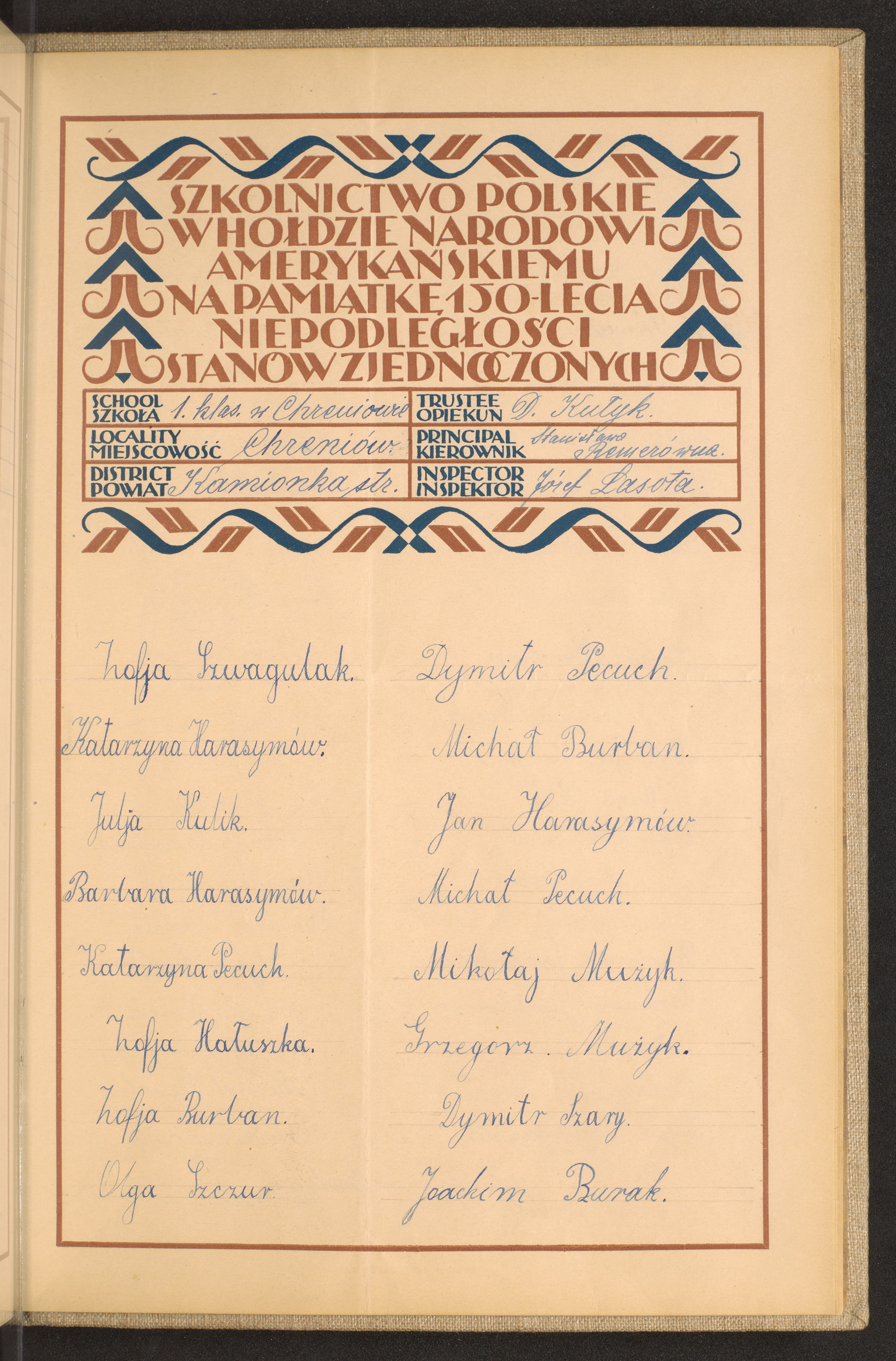 szkoły powszechne i gimnazja; powiaty Jaworów - Kamionka