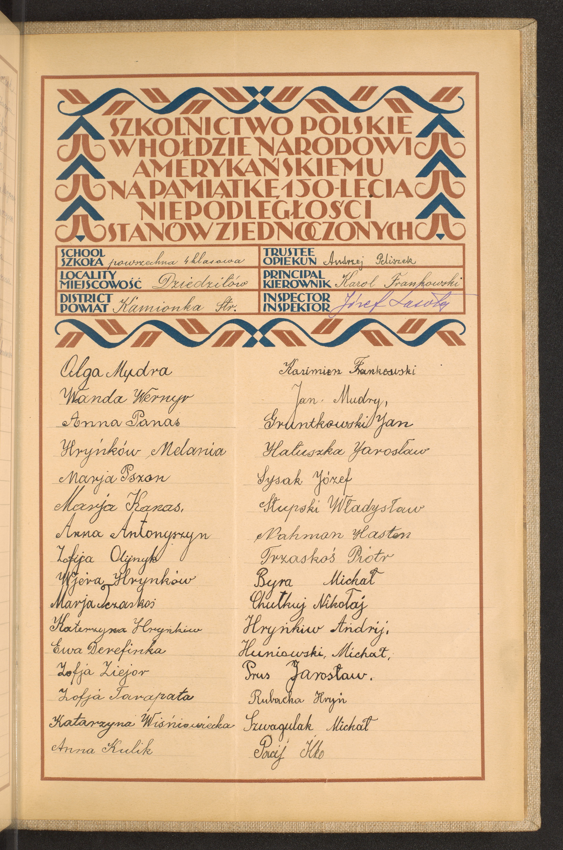 szkoły powszechne i gimnazja; powiaty Jaworów - Kamionka