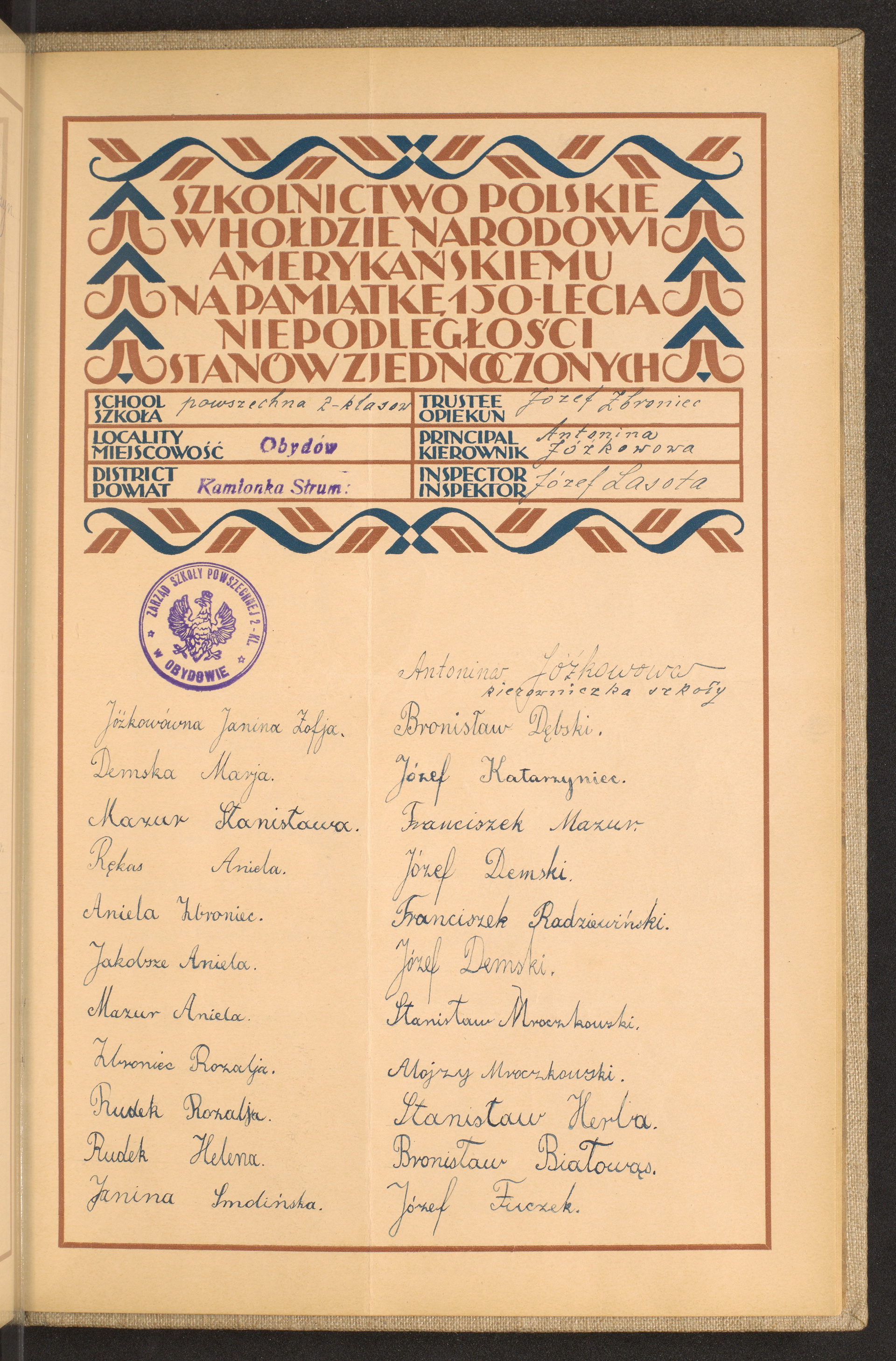 szkoły powszechne i gimnazja; powiaty Jaworów - Kamionka
