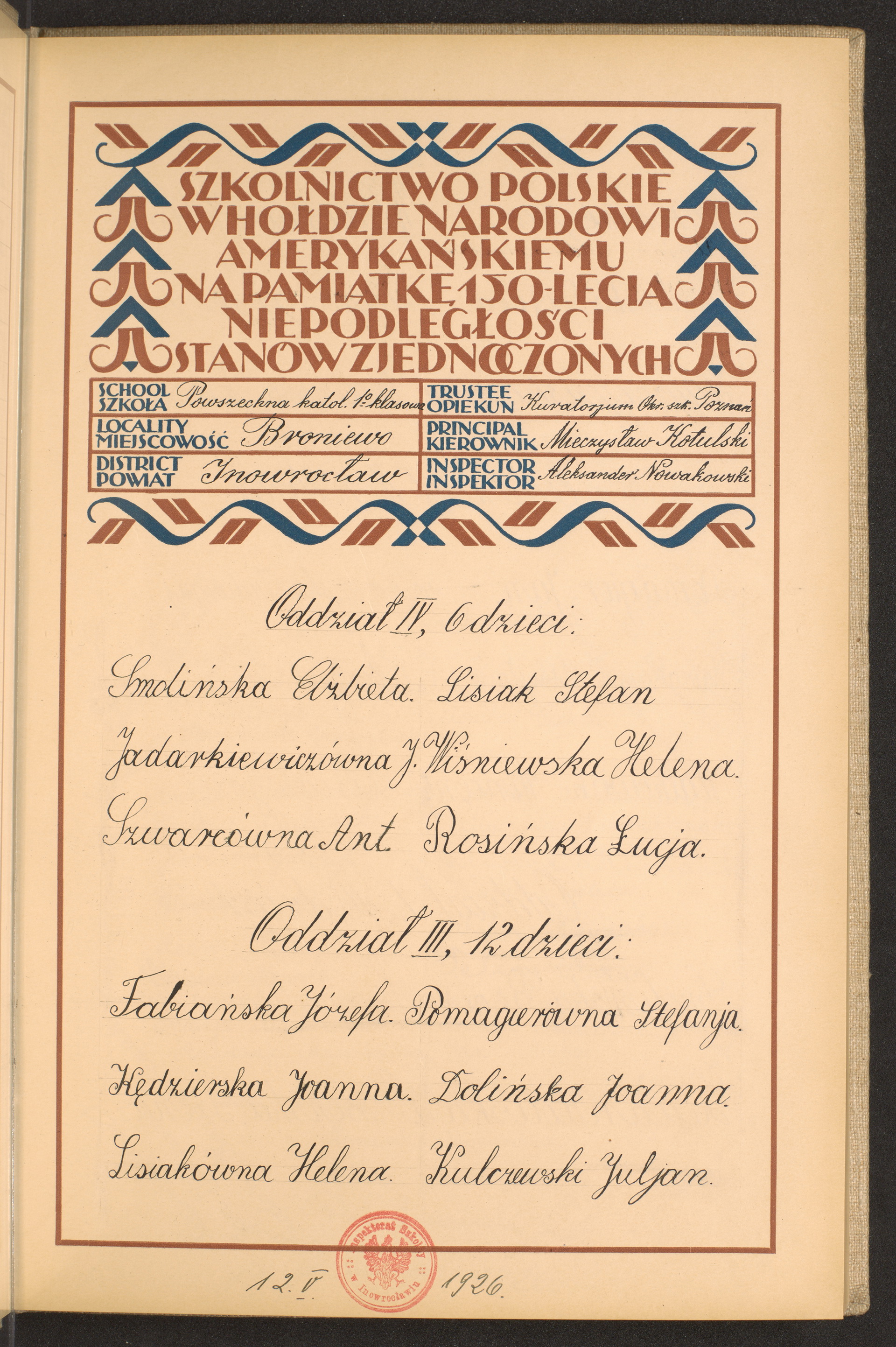 szkoły powszechne i gimnazja; powiaty Inowrocław - Jarocin