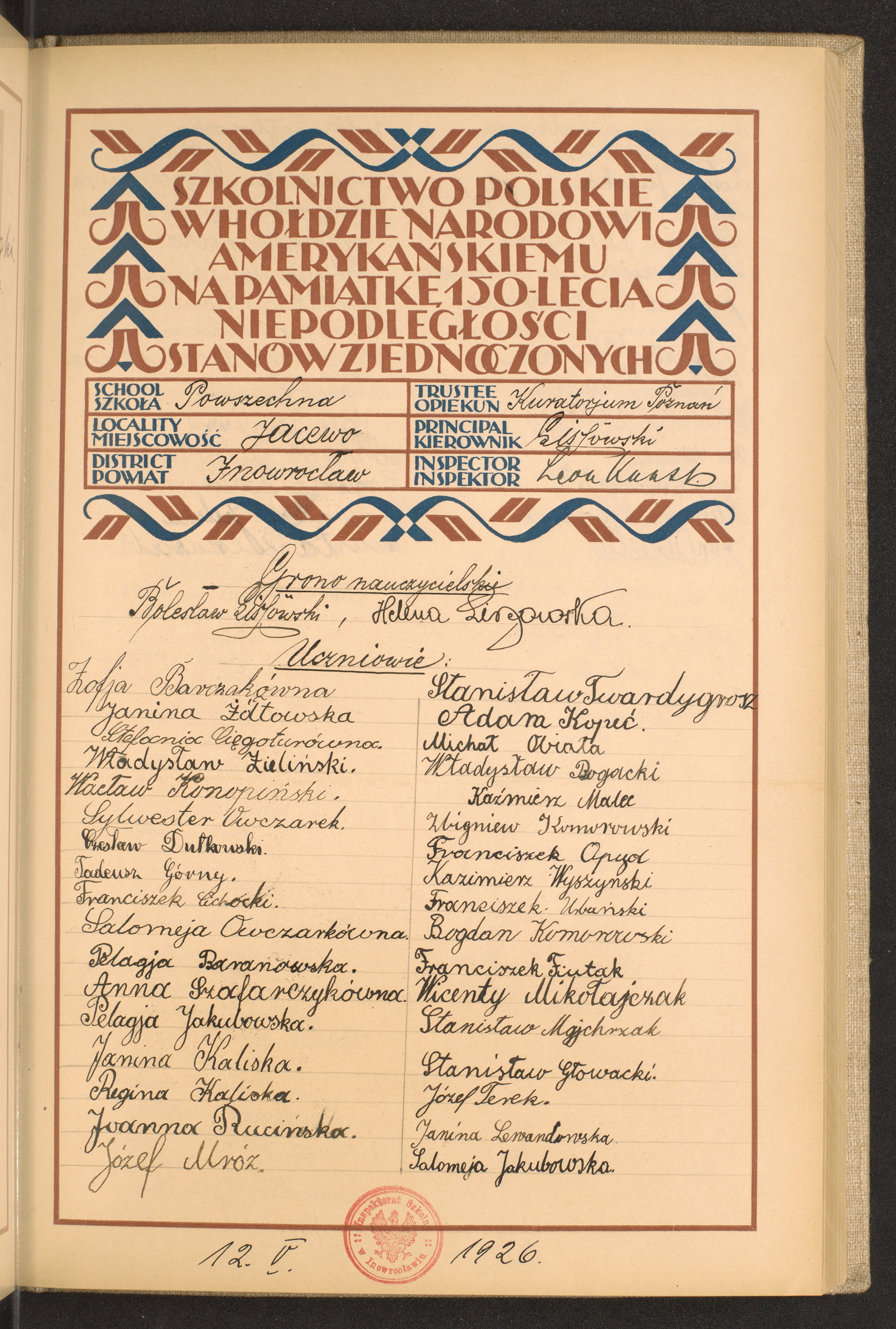 szkoły powszechne i gimnazja; powiaty Inowrocław - Jarocin