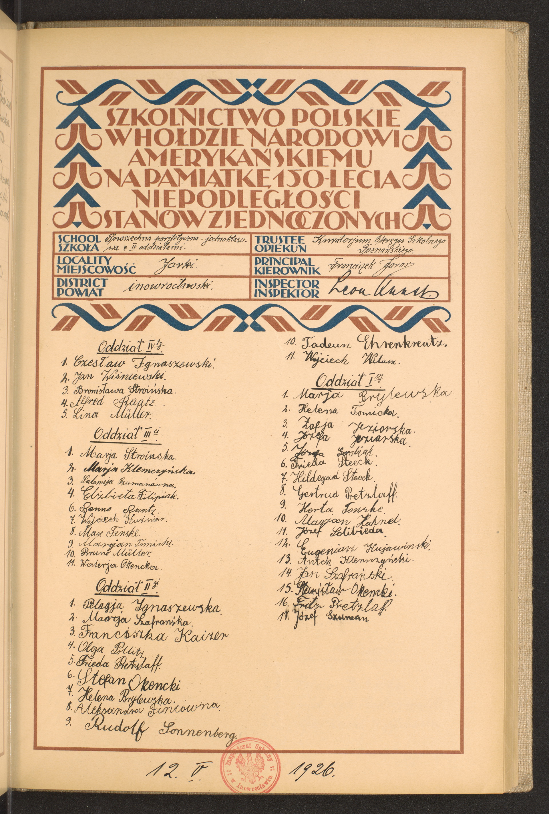 szkoły powszechne i gimnazja; powiaty Inowrocław - Jarocin