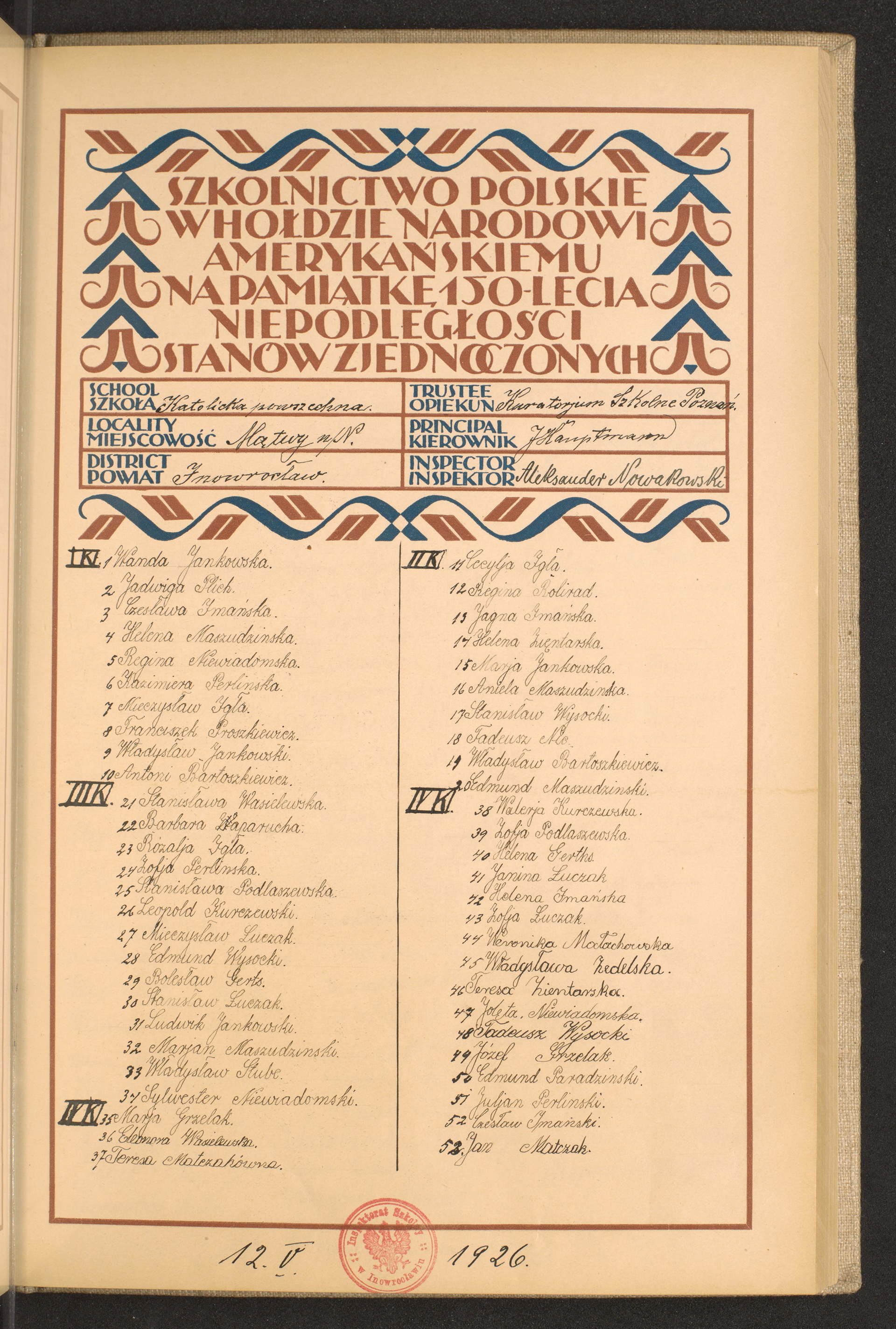 szkoły powszechne i gimnazja; powiaty Inowrocław - Jarocin