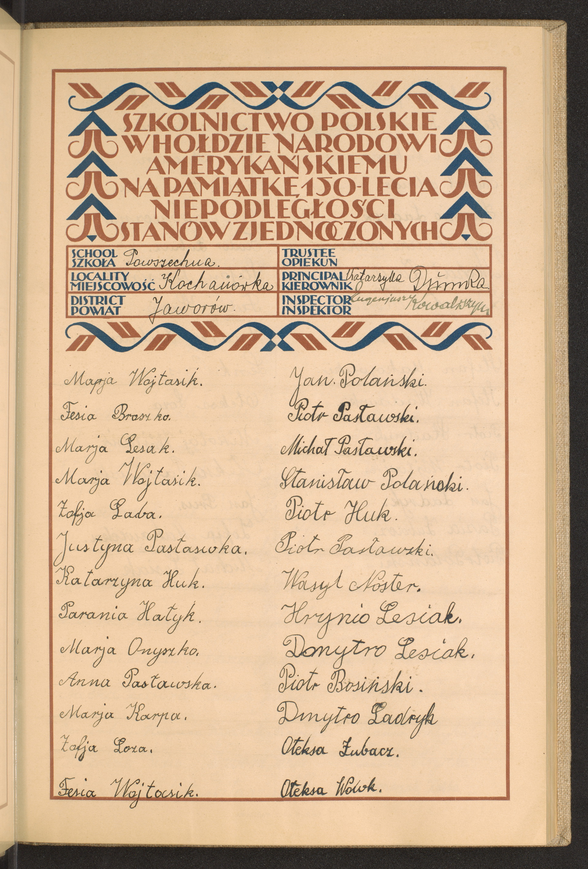 szkoły powszechne i gimnazja; powiaty Jaworów - Kamionka