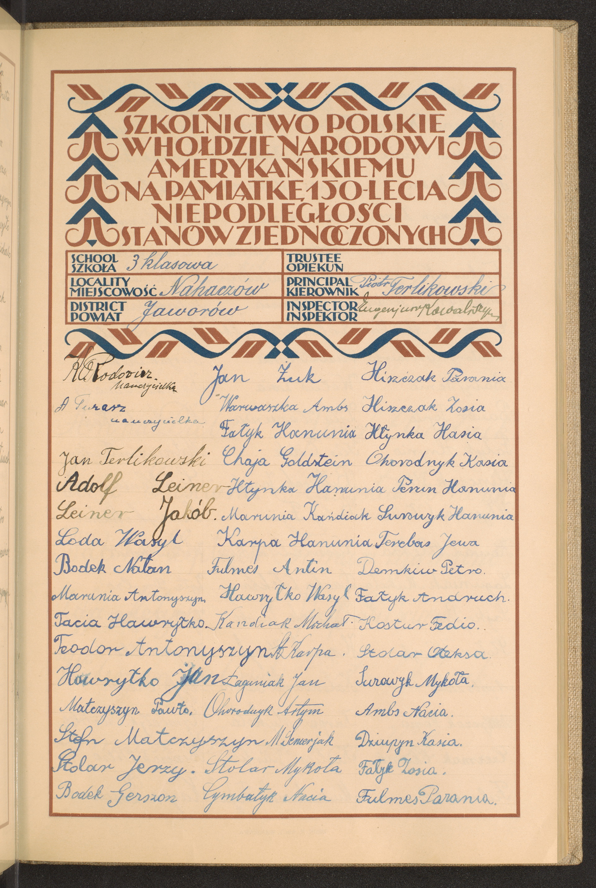 szkoły powszechne i gimnazja; powiaty Jaworów - Kamionka