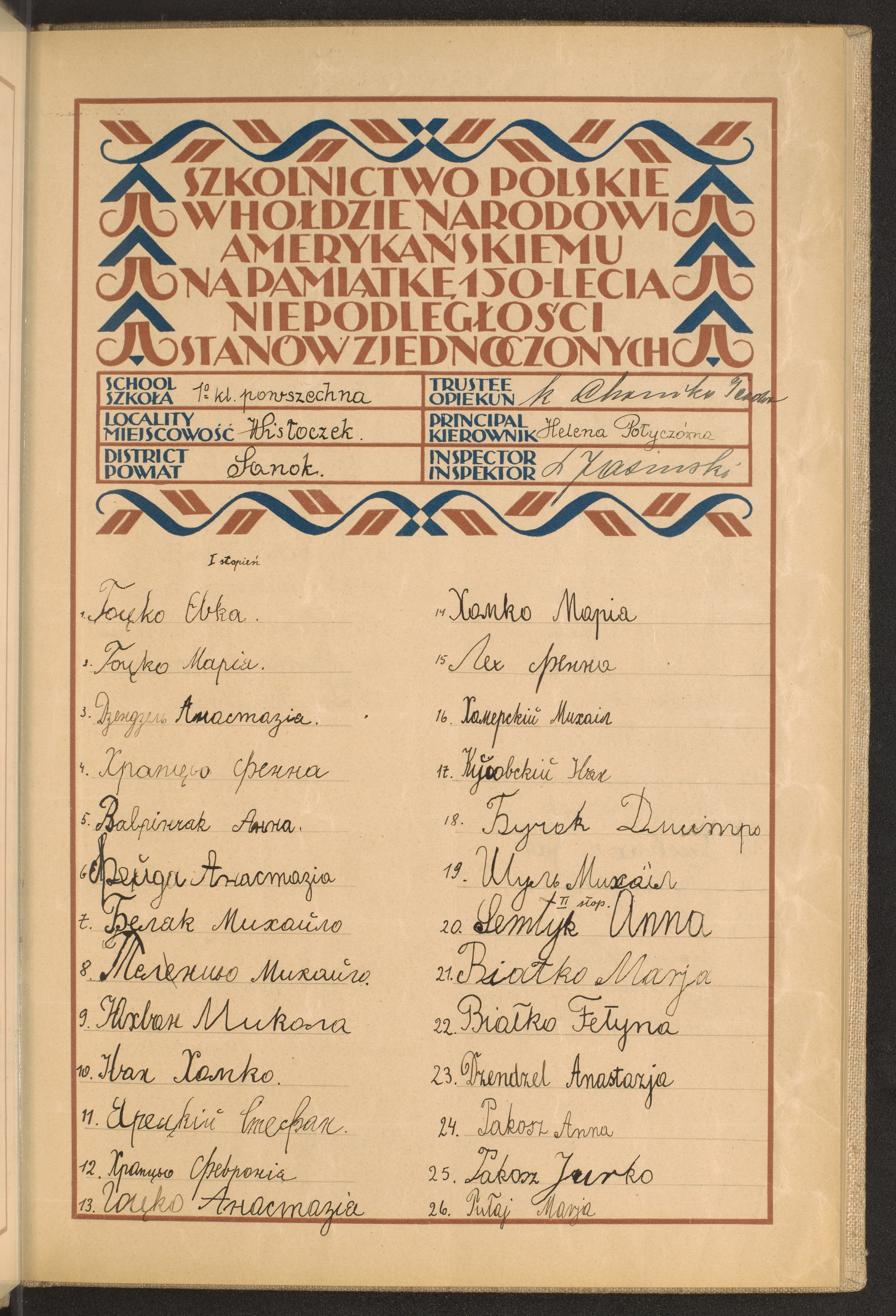 szkoły powszechne i gimnazja; powiaty Sanok-Siedlce