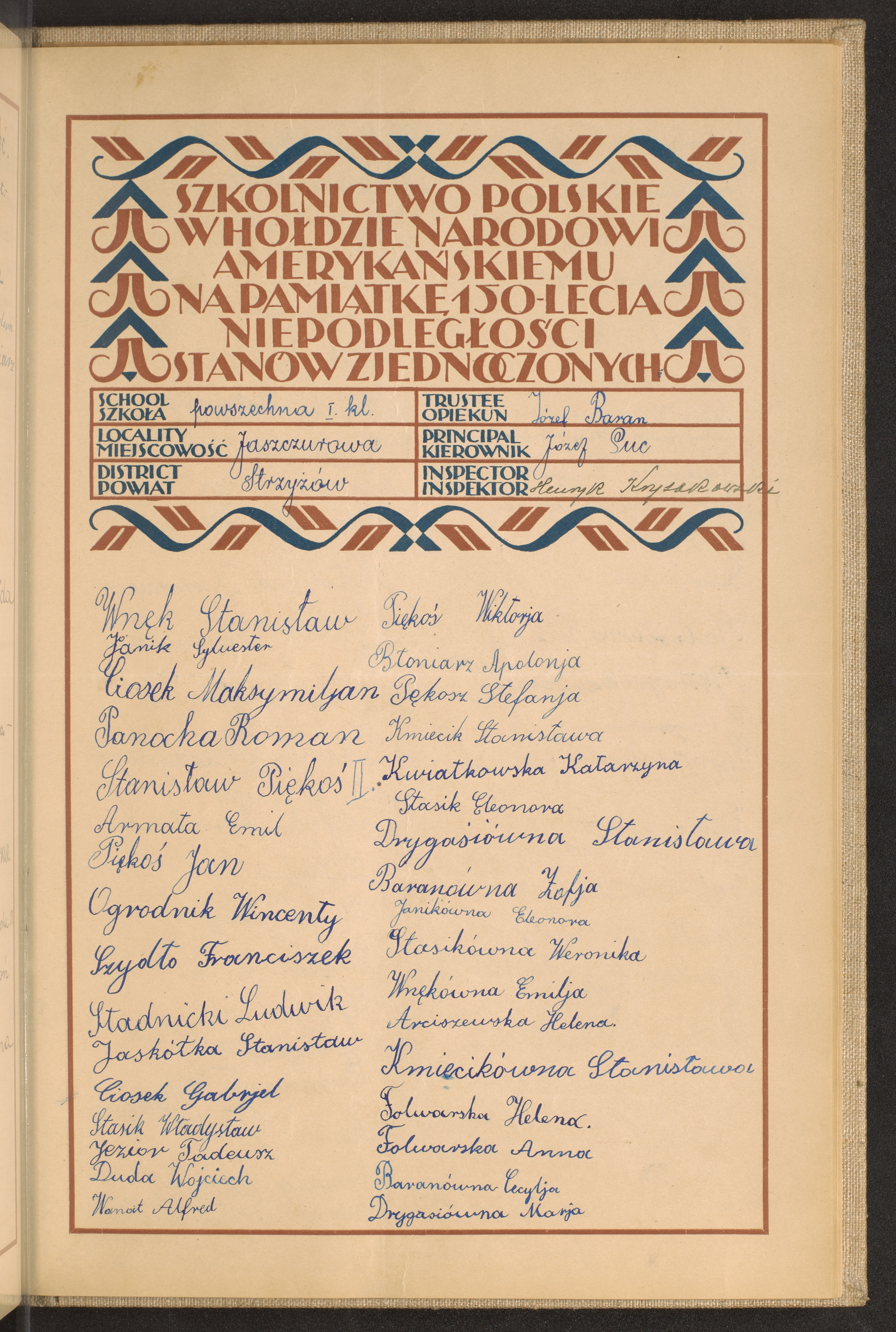 szkoły powszechne i gimnazja; powiaty Stryj-Strzyżów