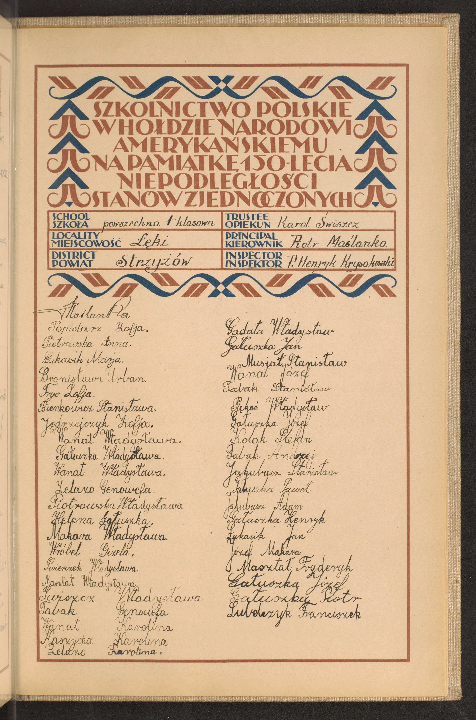 szkoły powszechne i gimnazja; powiaty Stryj-Strzyżów