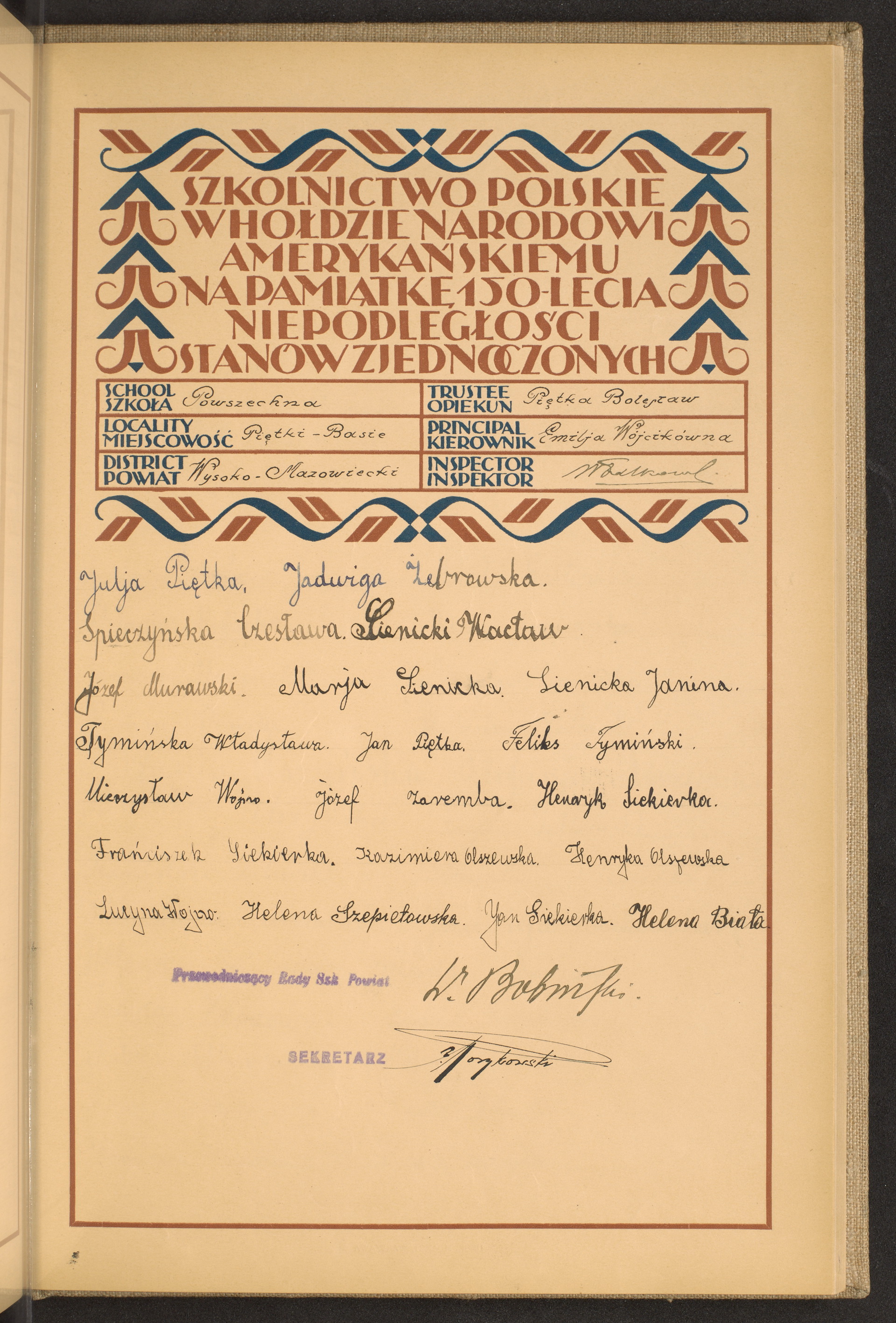 szkoły powszechne i gimnazja; powiaty Wyrzysk-Zaleszczyki