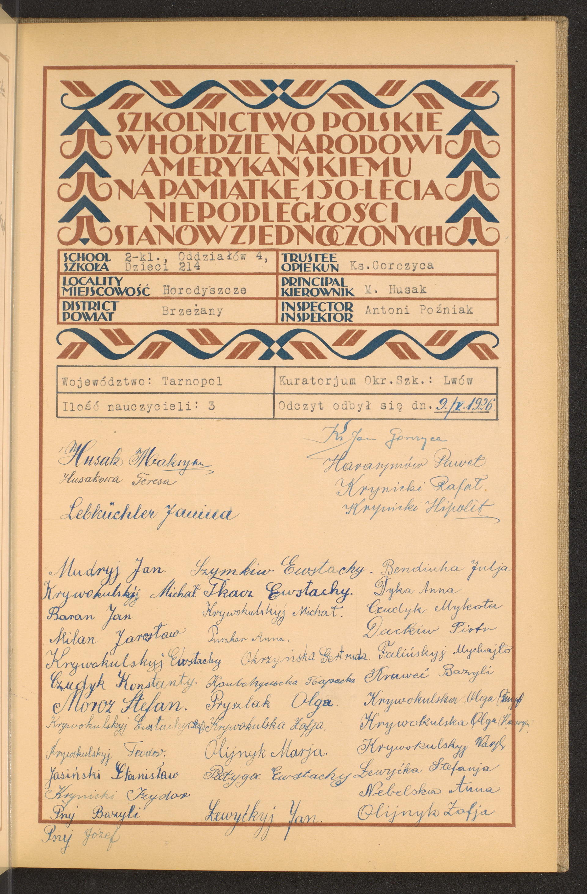 szkoły powszechne i gimnazja; powiaty Brzeżany - Ciechanów