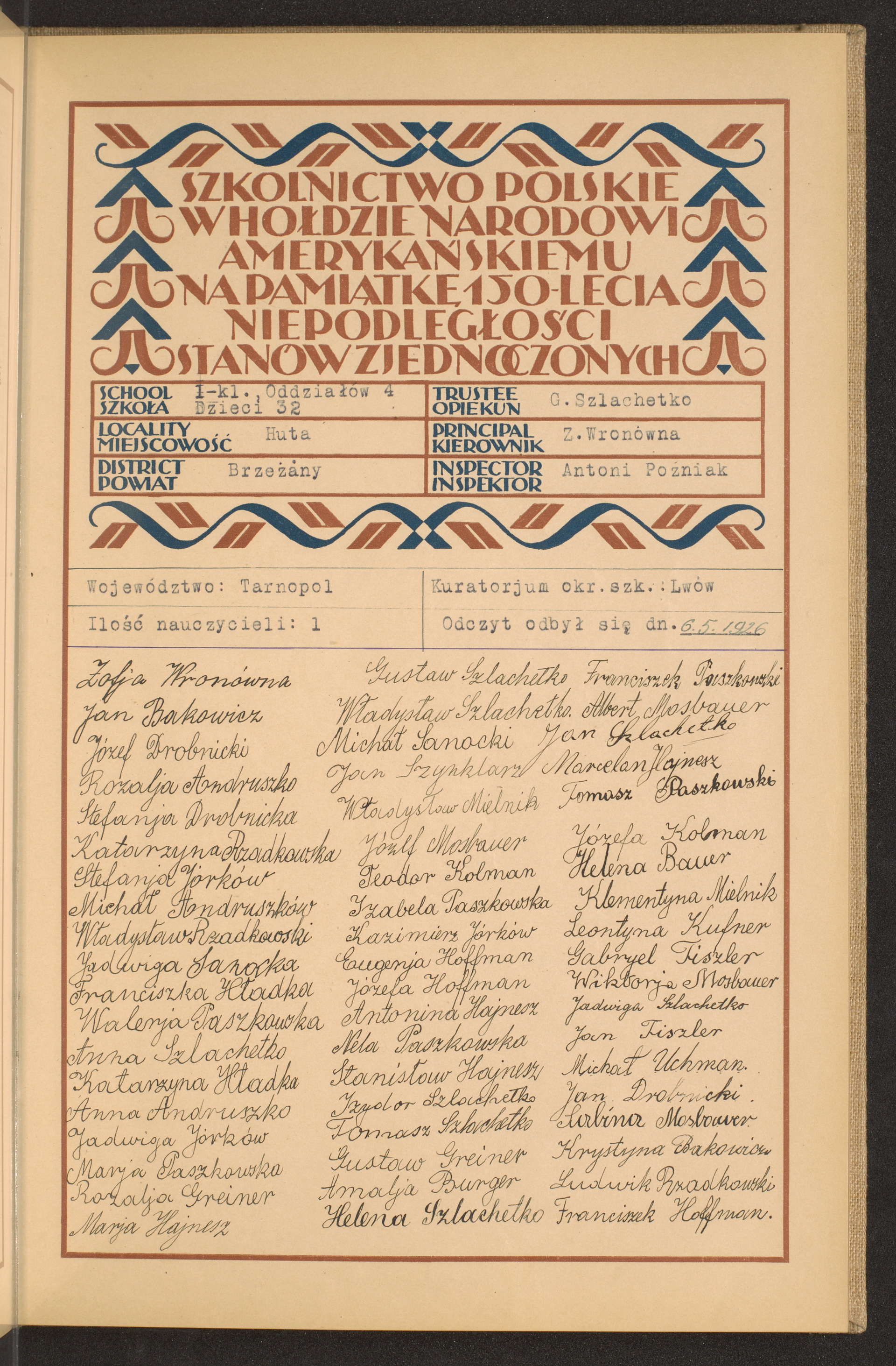 szkoły powszechne i gimnazja; powiaty Brzeżany - Ciechanów