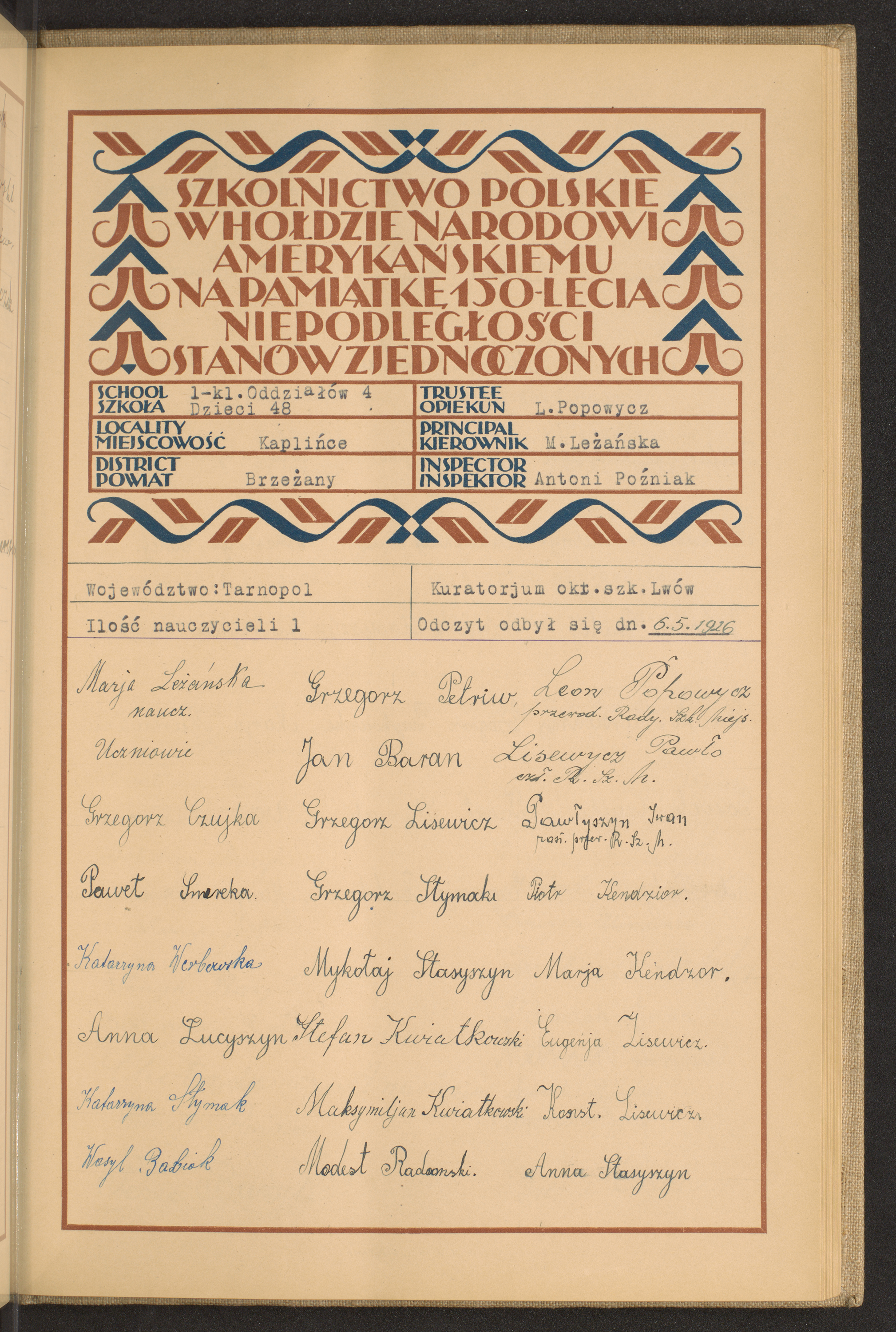 szkoły powszechne i gimnazja; powiaty Brzesko-Brzeżany