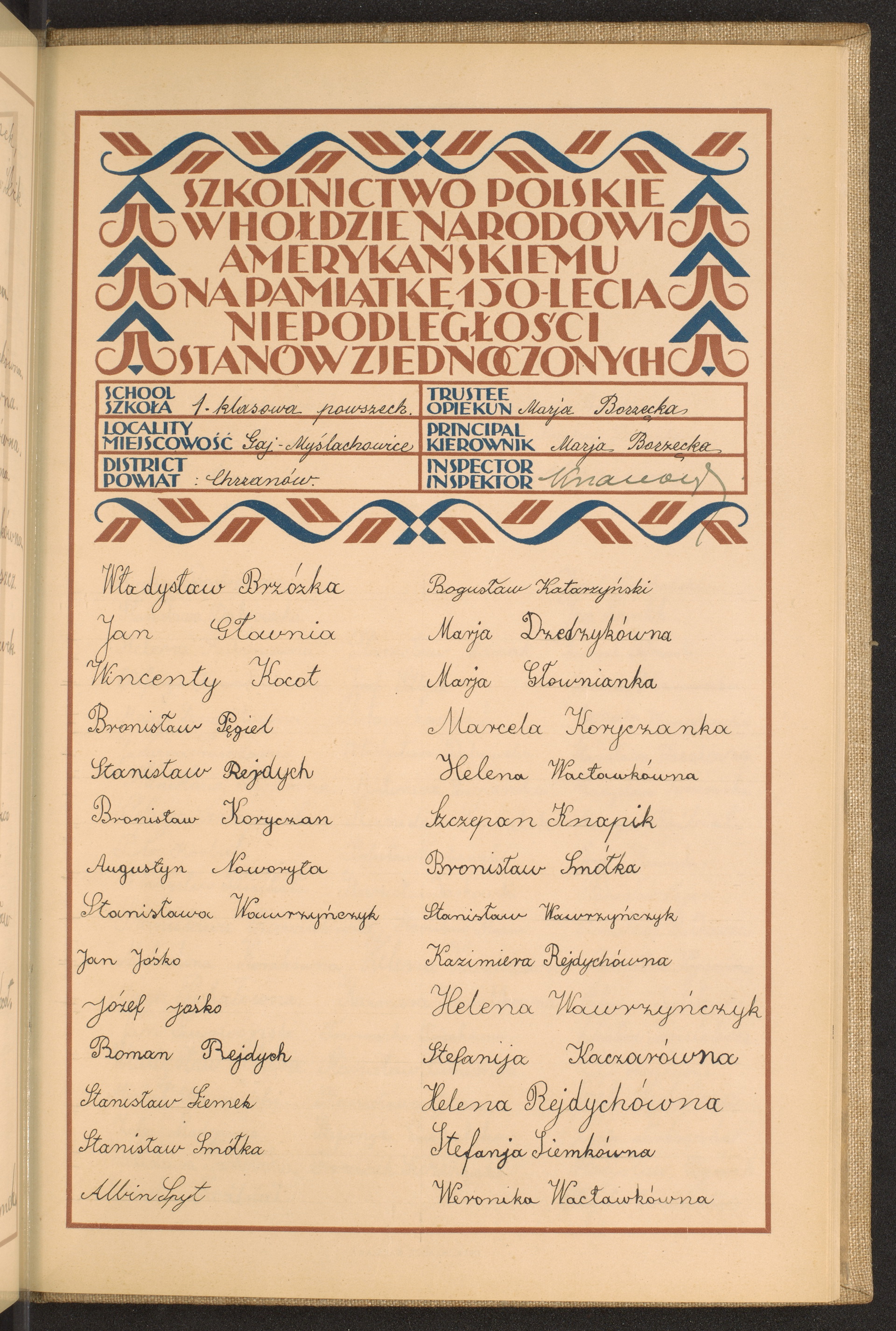 szkoły powszechne i gimnazja; powiaty Chojnice-Chrzanów