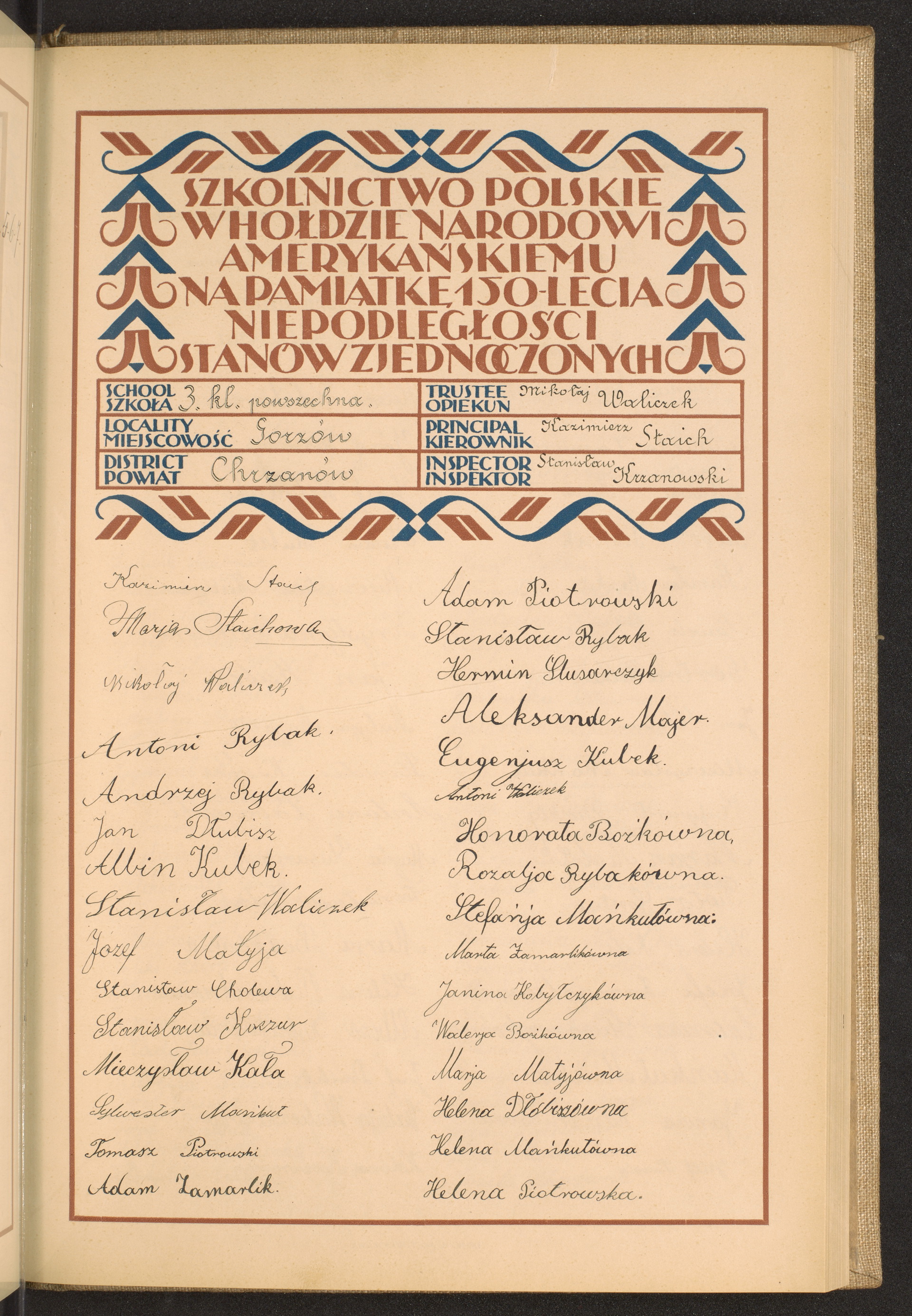 szkoły powszechne i gimnazja; powiaty Chojnice-Chrzanów