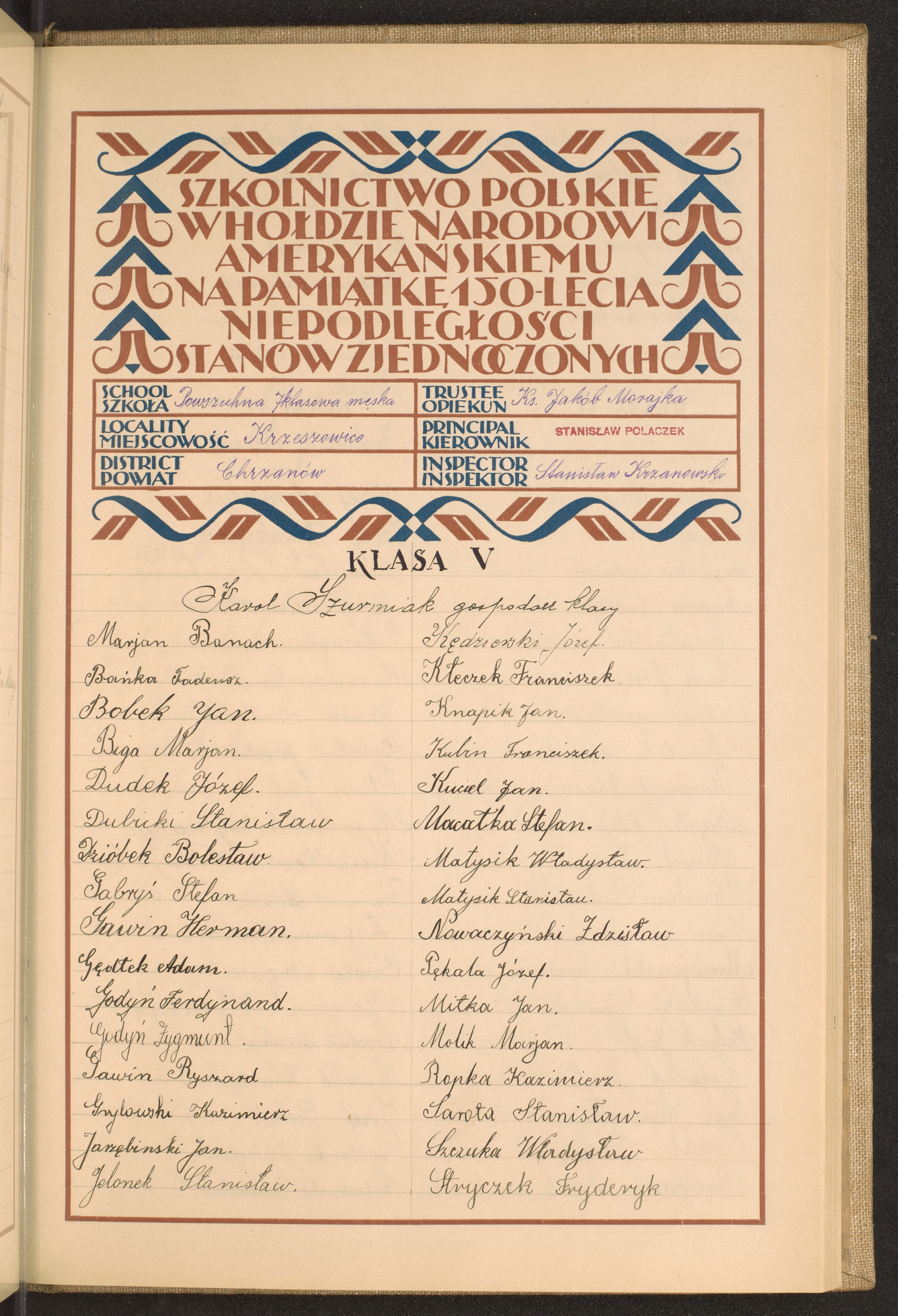 szkoły powszechne i gimnazja; powiaty Chojnice-Chrzanów