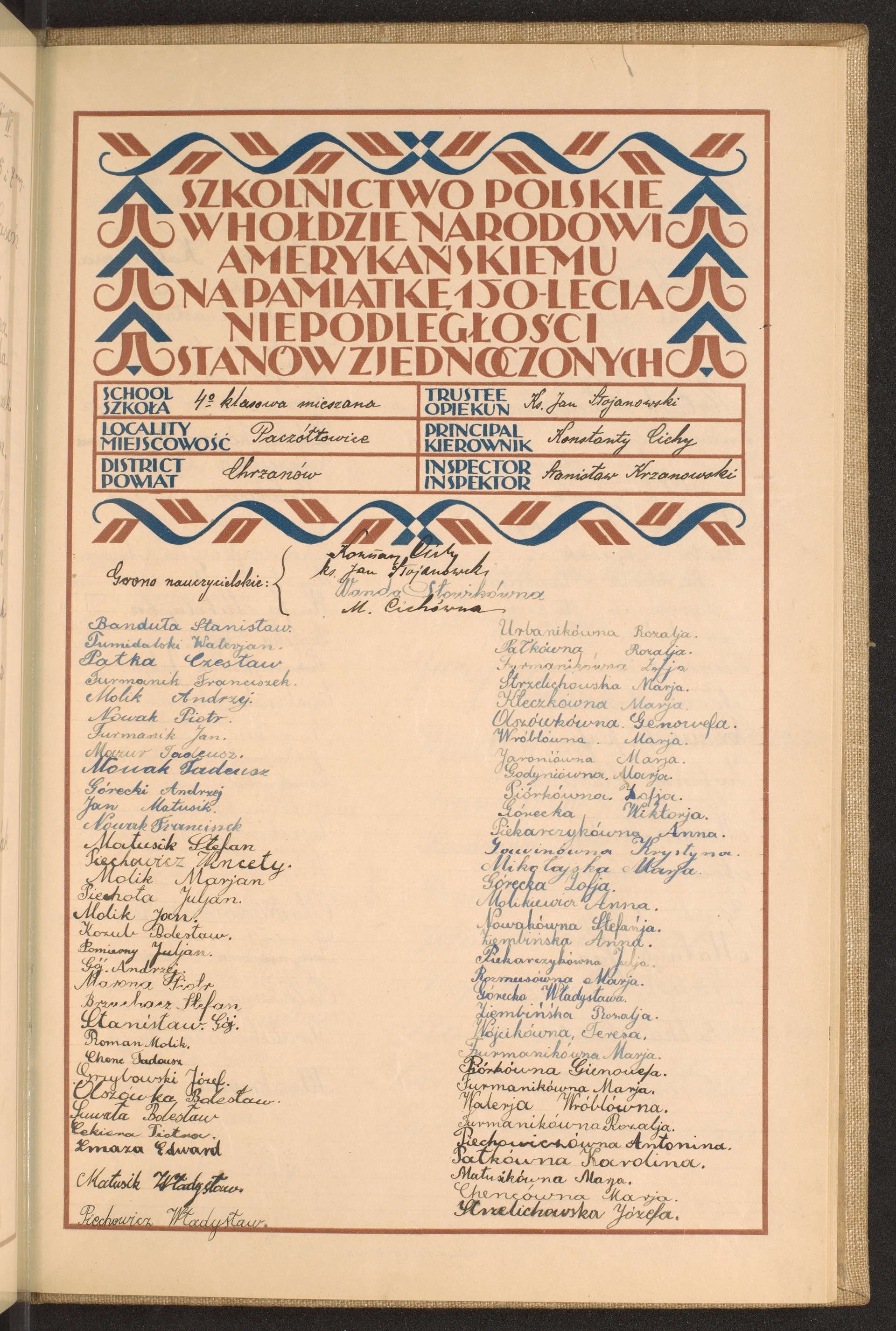 szkoły powszechne i gimnazja; powiaty Chojnice-Chrzanów