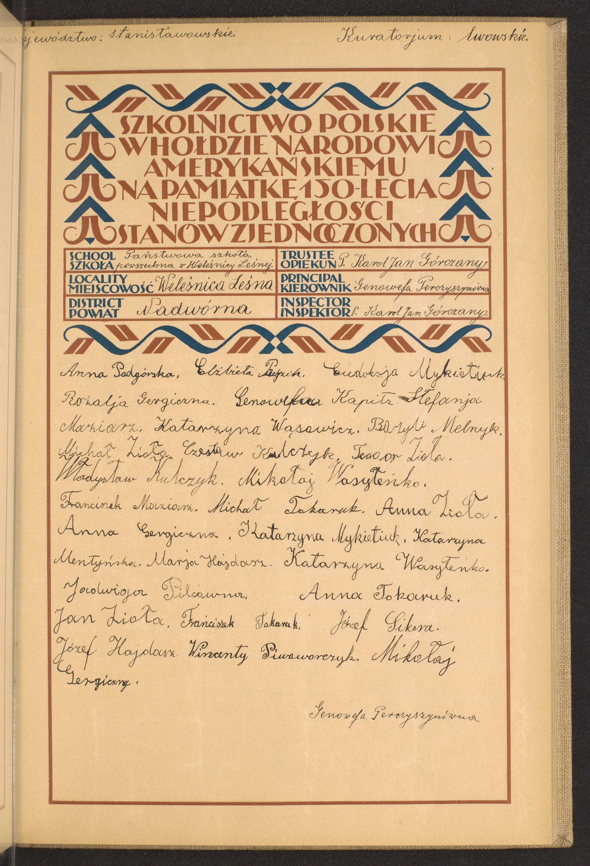 szkoły powszechne i gimnazja; powiaty Nadwórna-Nieszawa