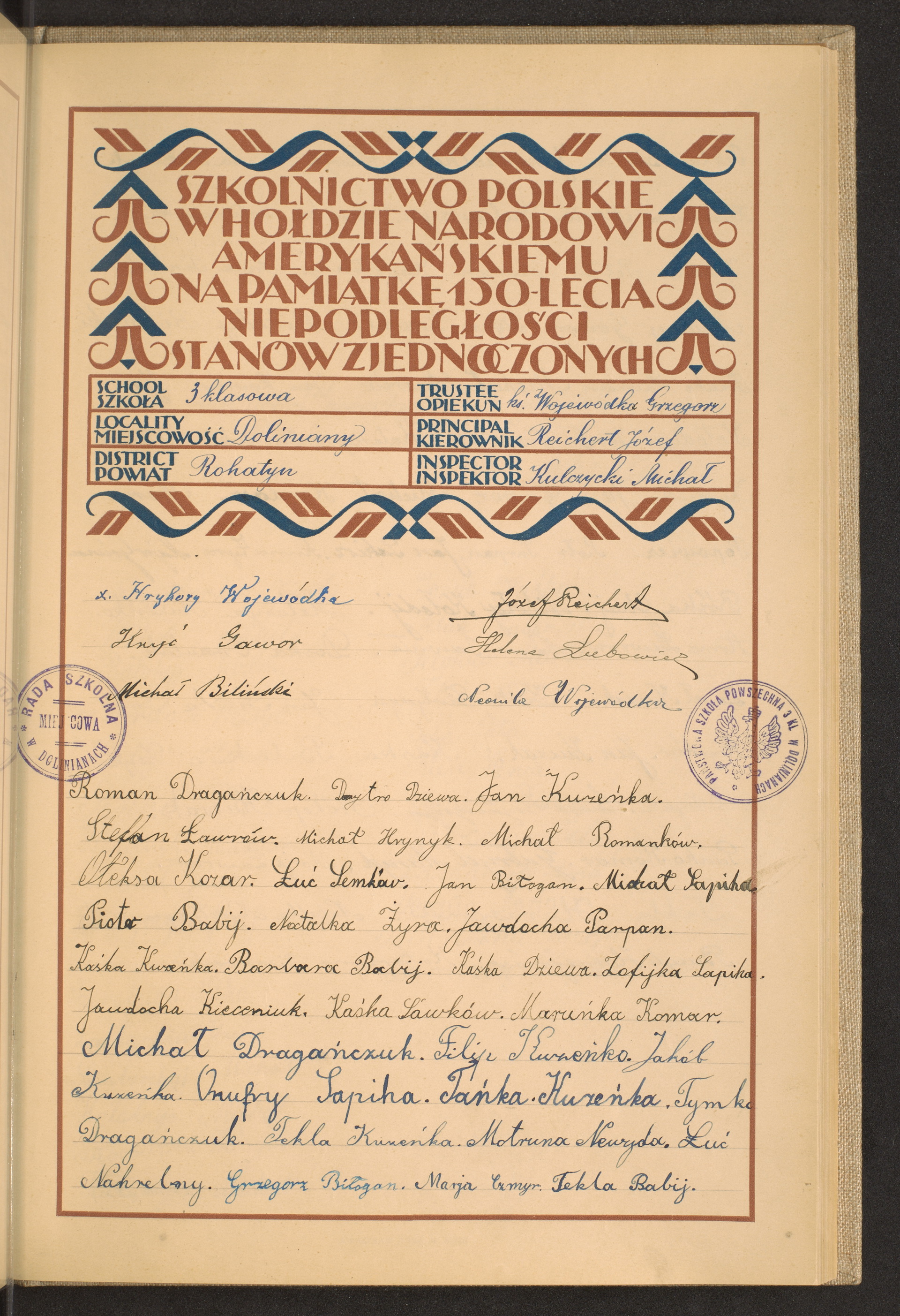 szkoły powszechne i gimnazja; powiaty Rawa Ruska-Rudki