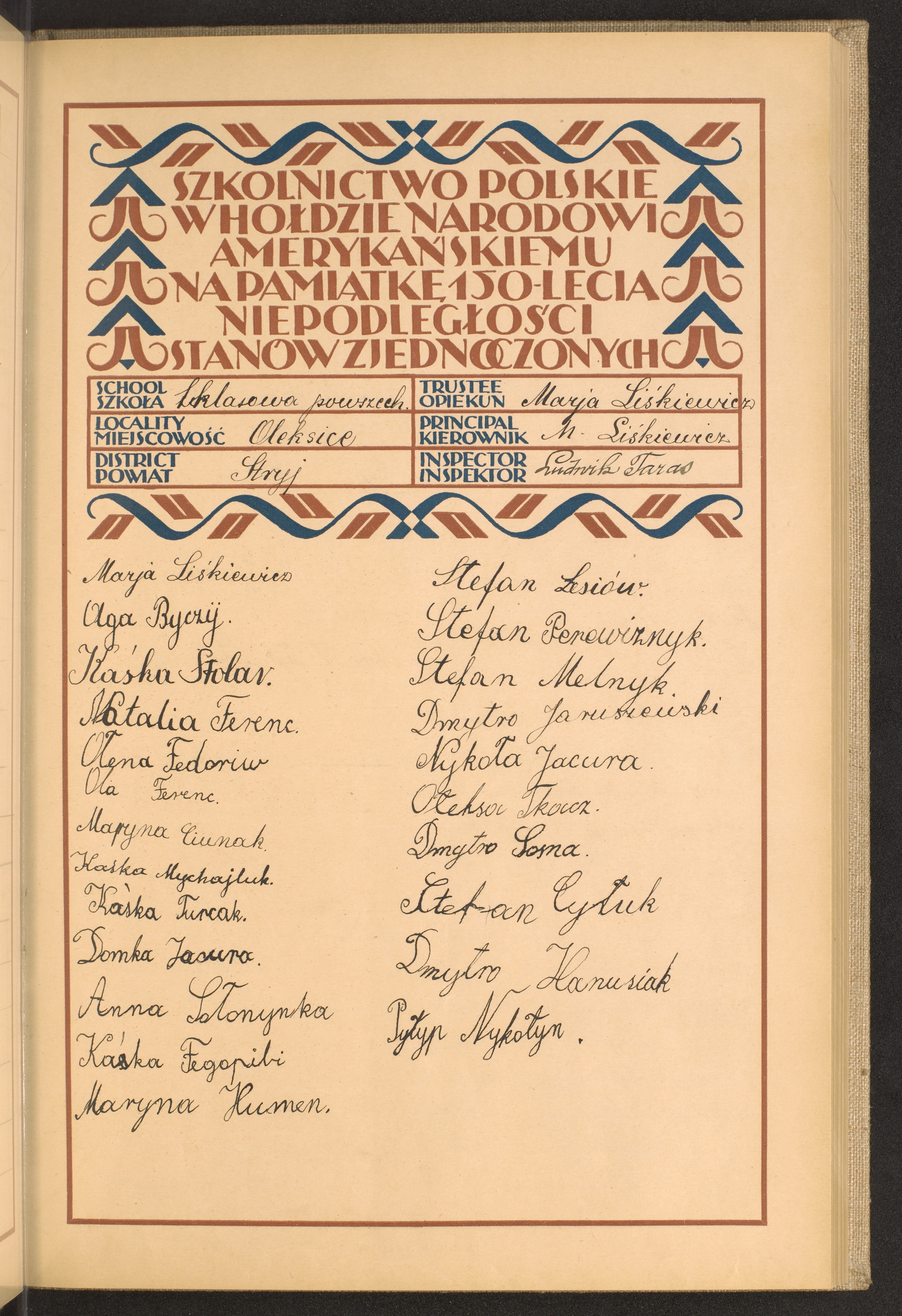 szkoły powszechne i gimnazja; powiaty Stryj-Strzyżów