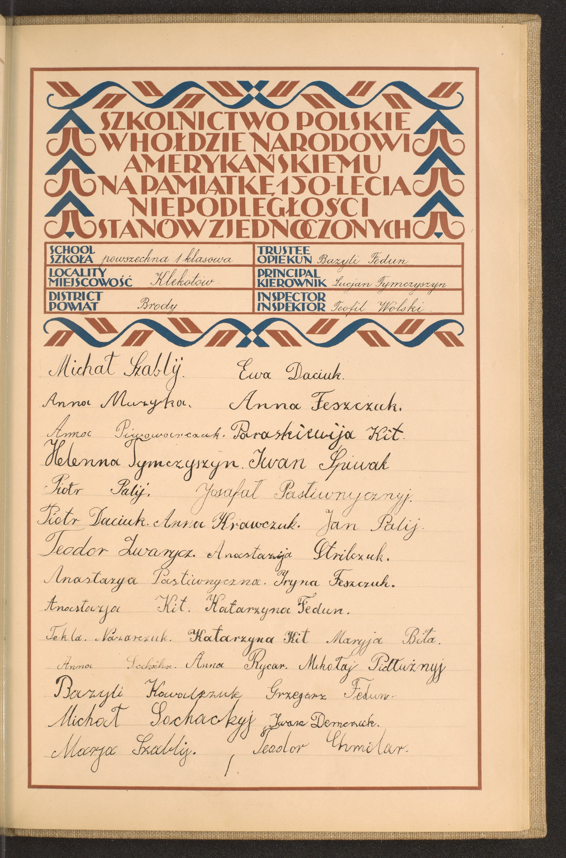 szkoły powszechne i gimnazja; powiaty Brasław-Brzesko