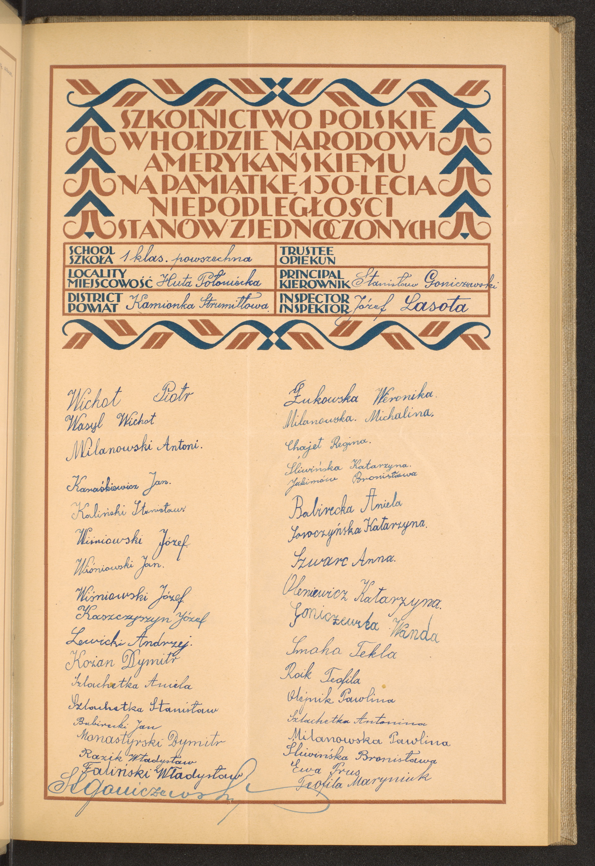 szkoły powszechne i gimnazja; powiaty Kamionka Strumiłowska-Kępno