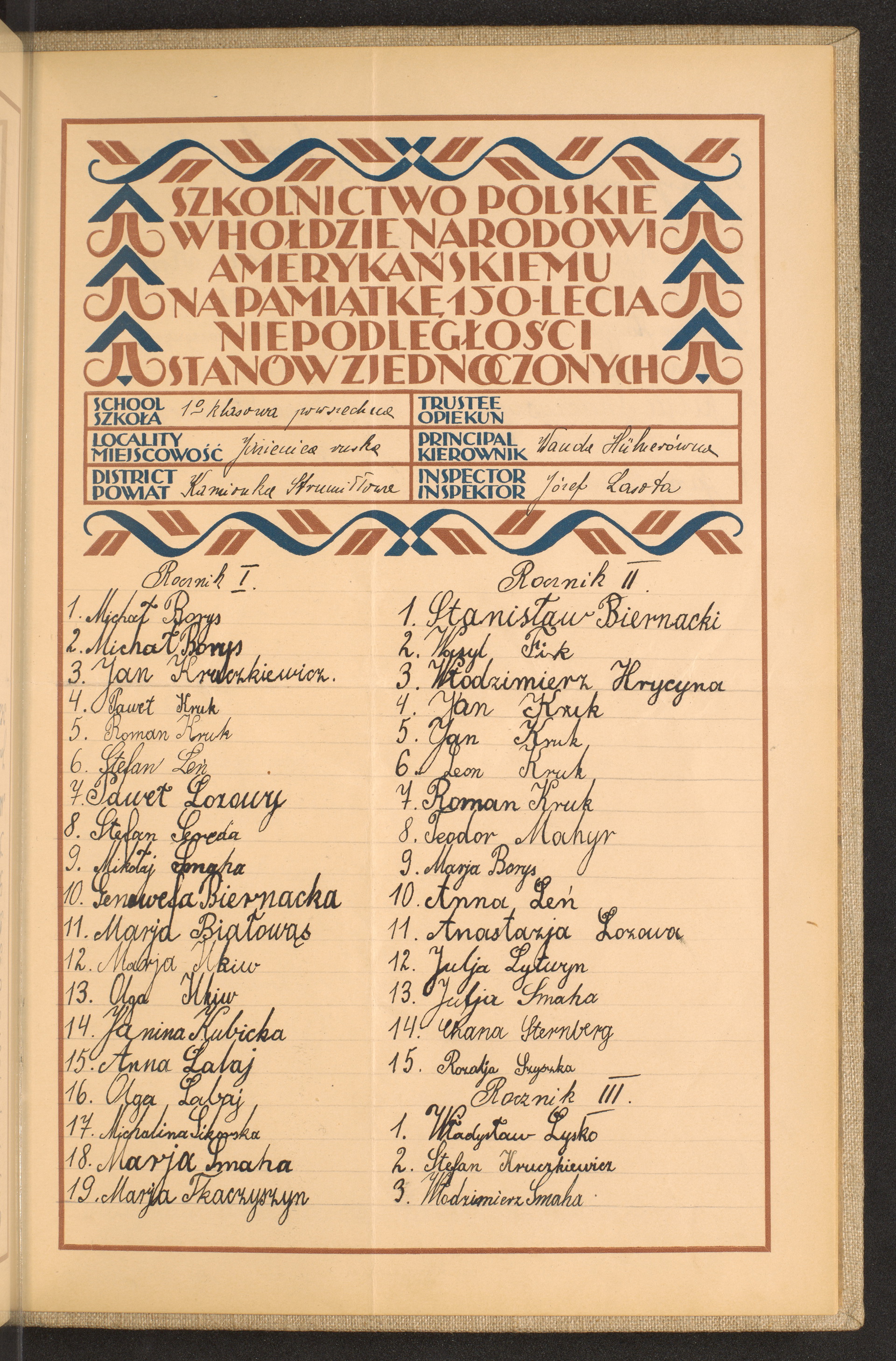 szkoły powszechne i gimnazja; powiaty Jaworów - Kamionka