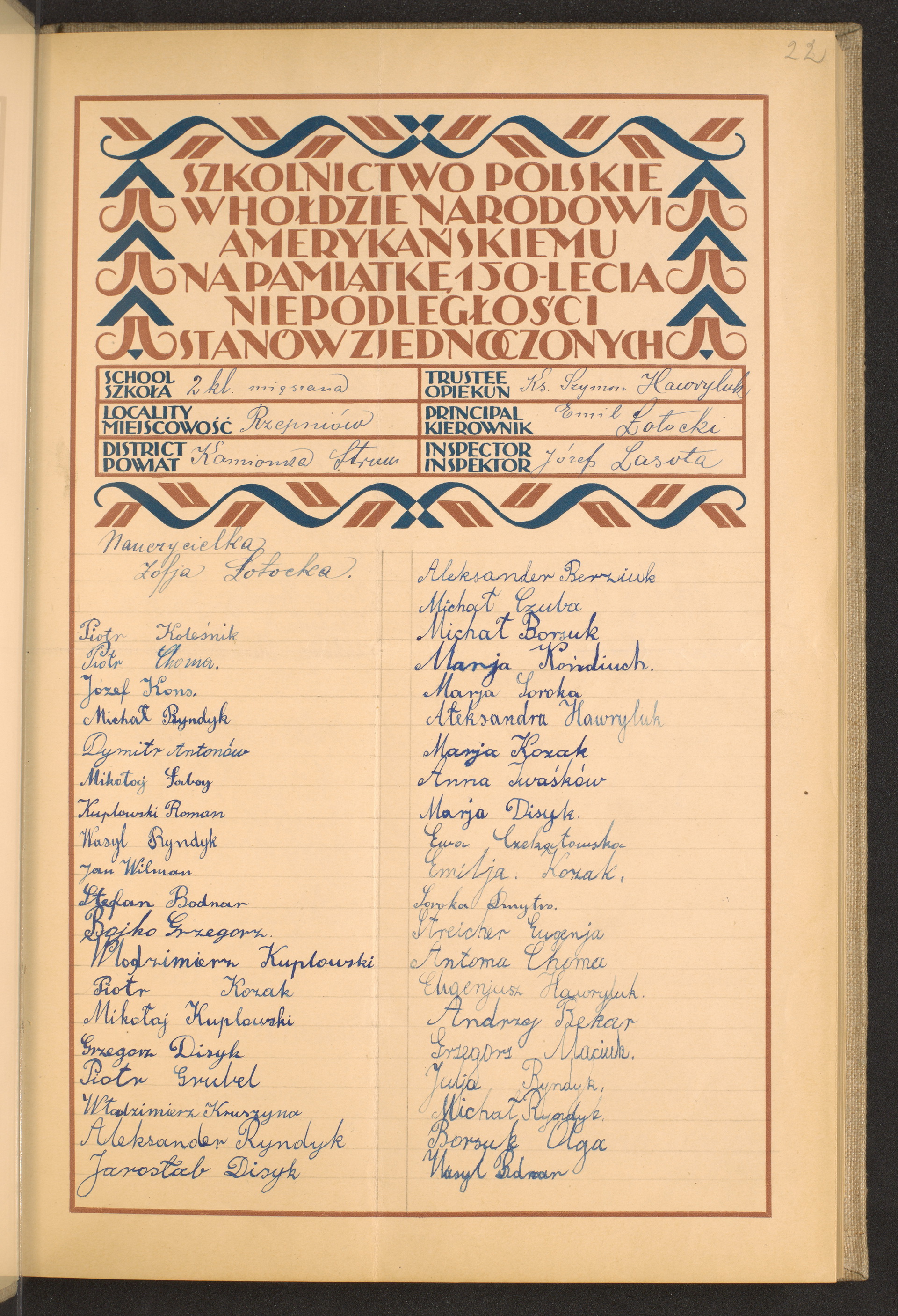 szkoły powszechne i gimnazja; powiaty Kamionka Strumiłowska-Kępno