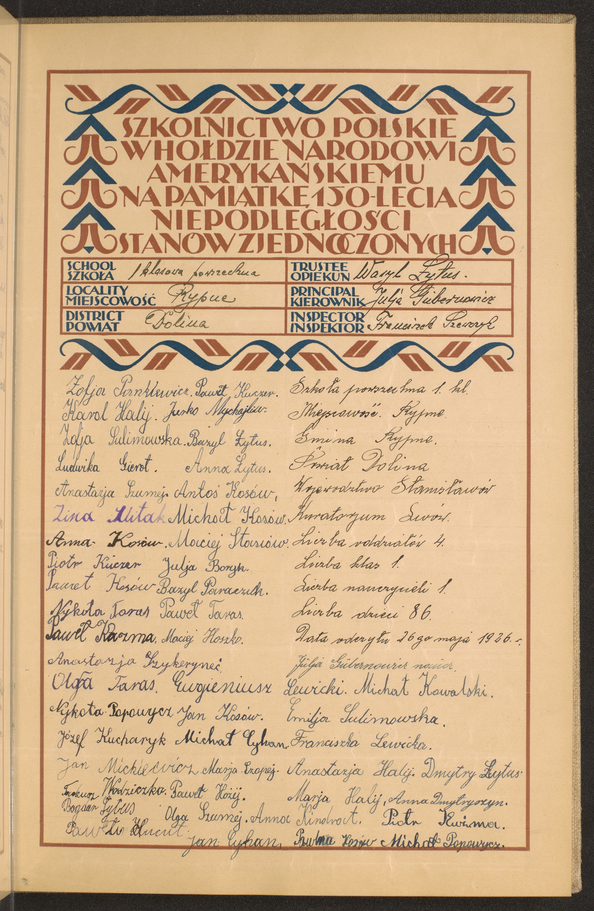 szkoły powszechne i gimnazja; powiaty Dolina-Dzisna