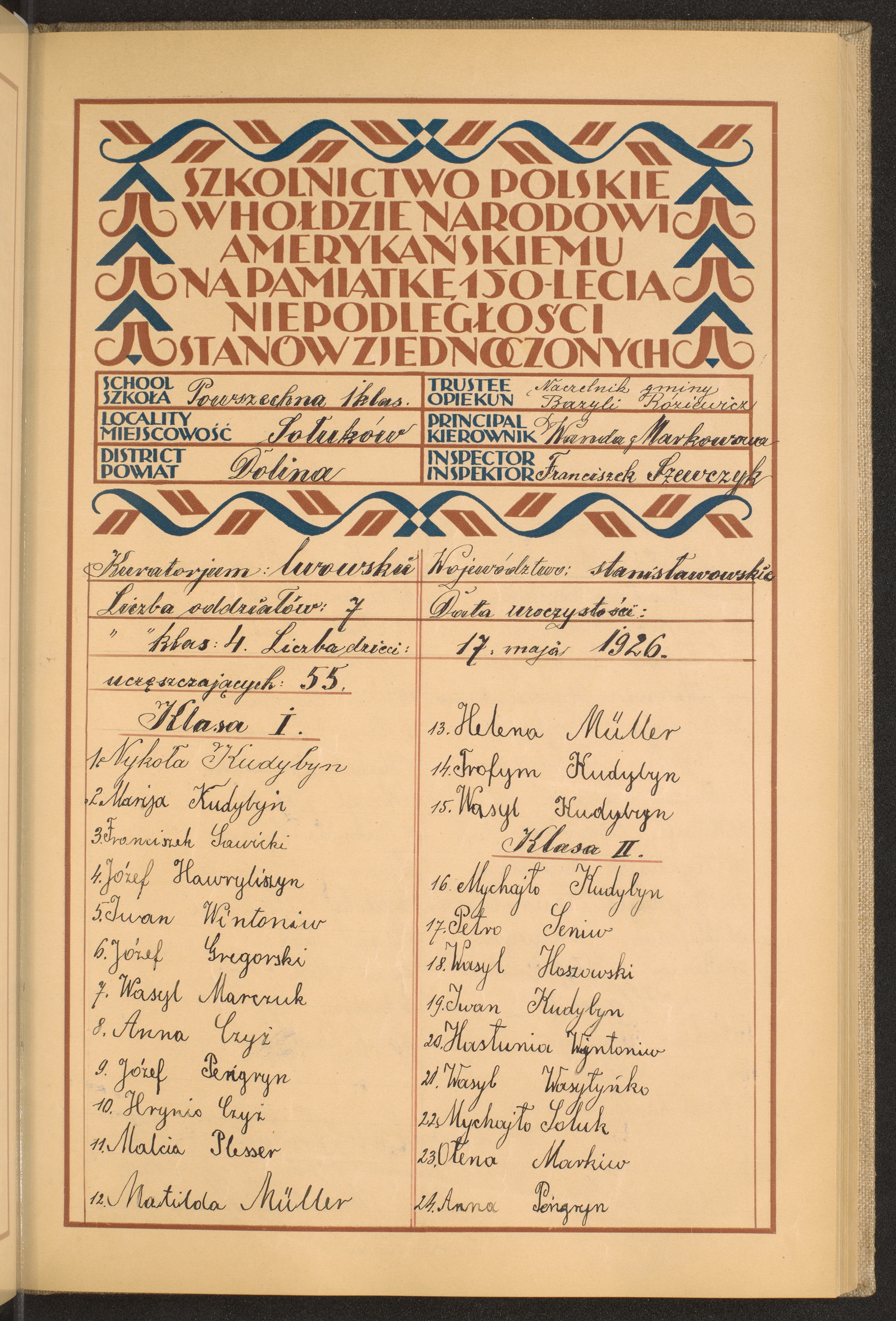 szkoły powszechne i gimnazja; powiaty Dolina-Dzisna