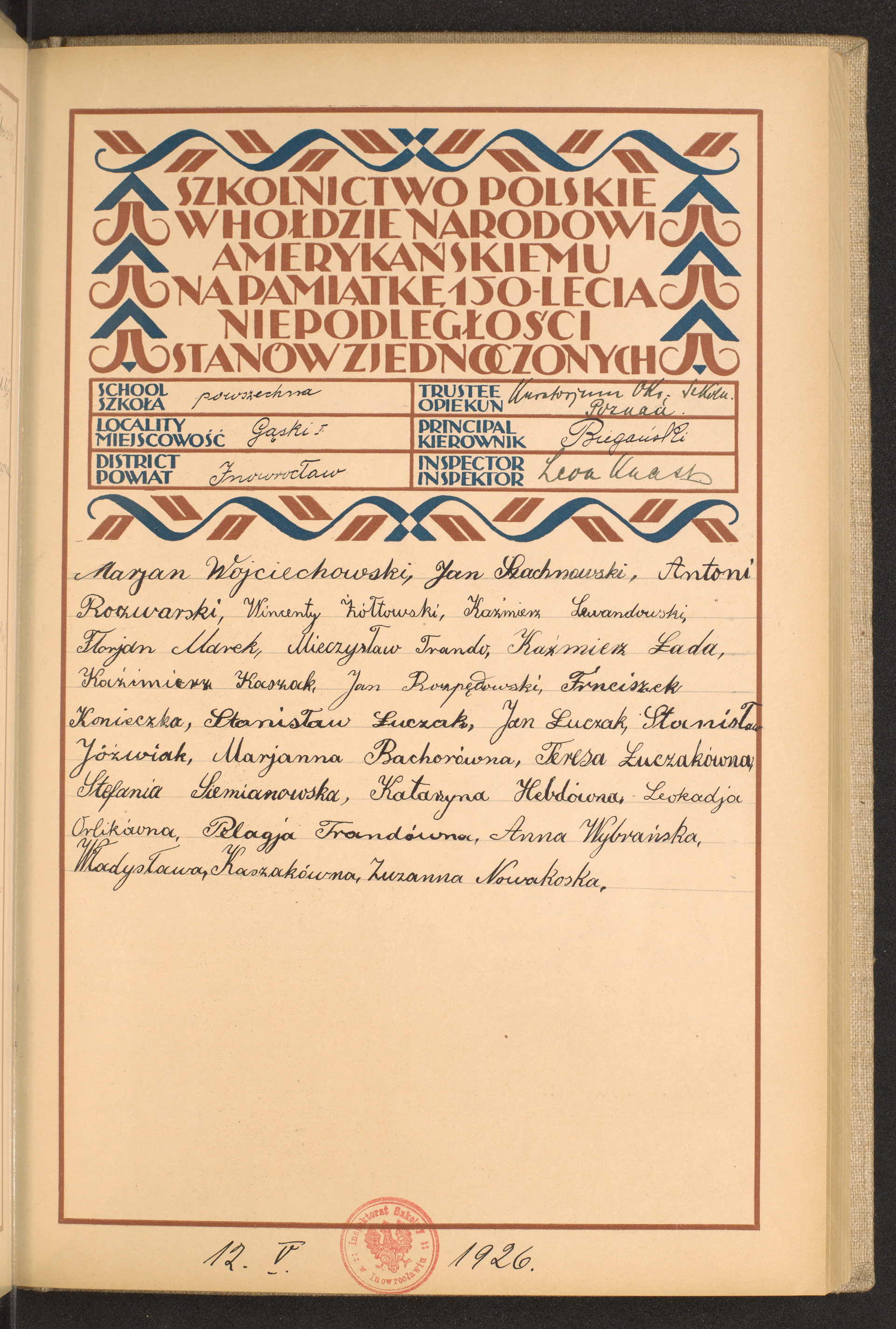 szkoły powszechne i gimnazja; powiaty Inowrocław - Jarocin