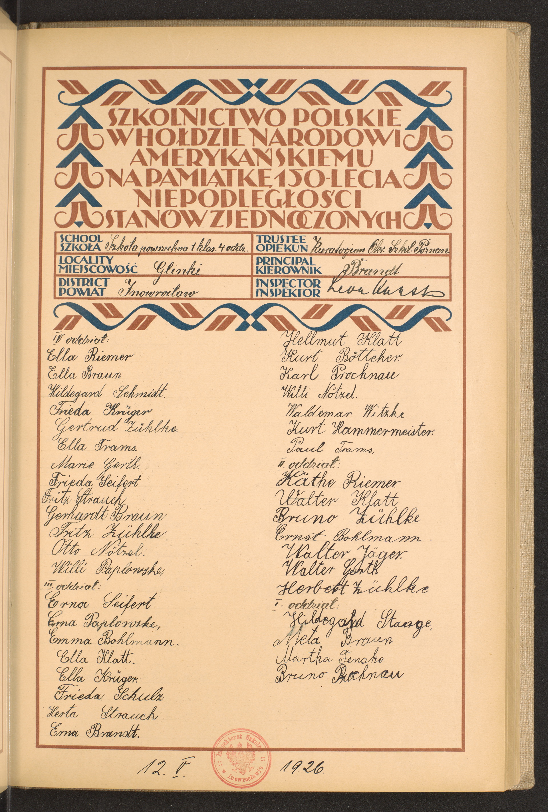 szkoły powszechne i gimnazja; powiaty Inowrocław - Jarocin
