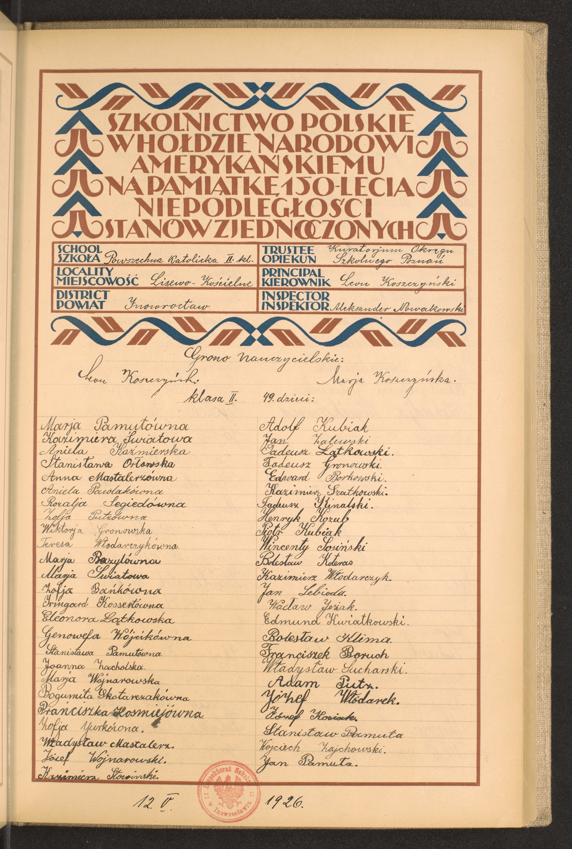 szkoły powszechne i gimnazja; powiaty Inowrocław - Jarocin