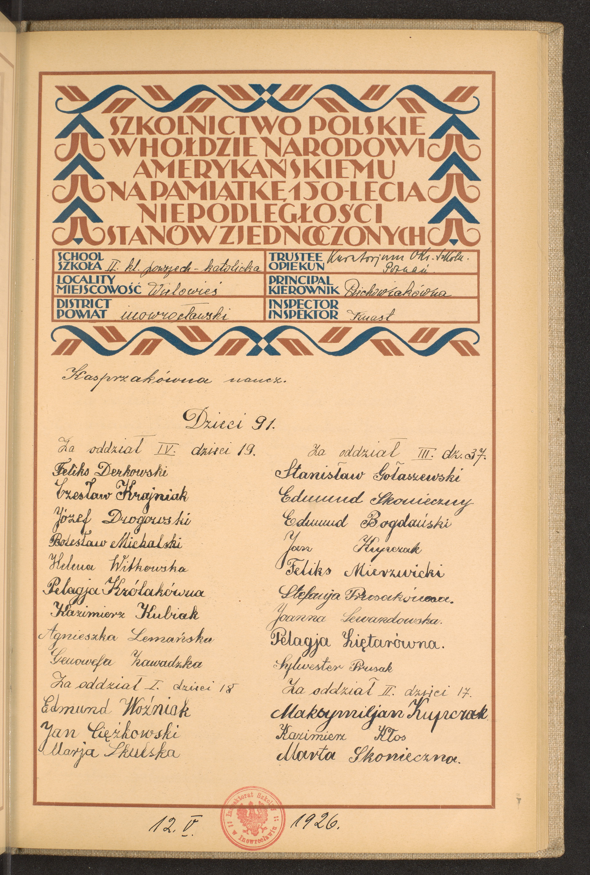 szkoły powszechne i gimnazja; powiaty Inowrocław - Jarocin