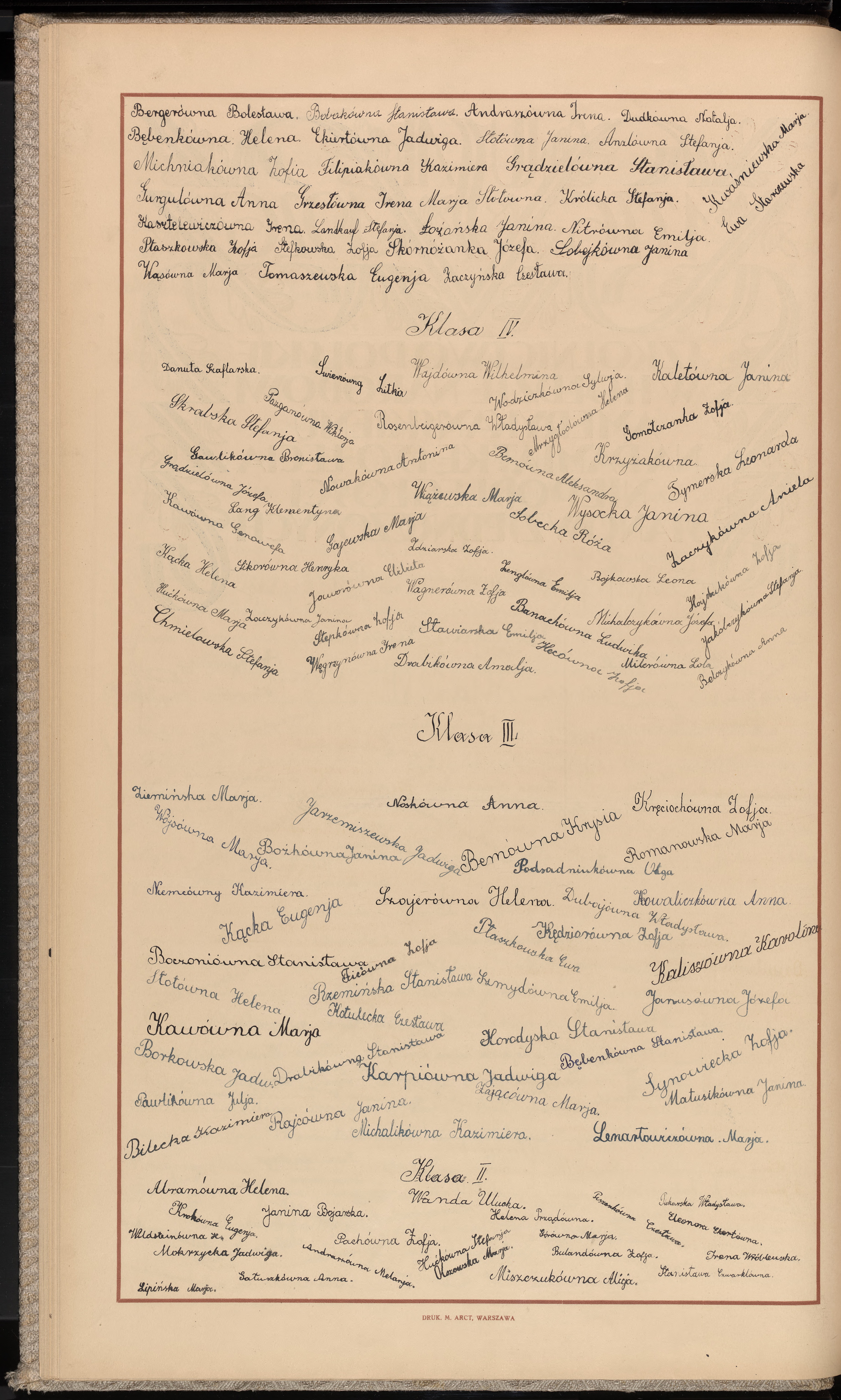 Bolesława Bergerówna Stanisława Bodakówna Irena Andraszówna Natalja Dudkówna Helena Bębenkówna Jadwiga Ehiertówna Janina Stołówna Stefanja Analówna Zofja Michniakówna Kazimiera Filipiakówna Stanisława Grądzielówna Anna Gurgulówna Irena Grzestówna Marja Stołówna Stefanja Królicka Irena Kasztelewiczówna Stefanja Londkanf Janina Łożańska Emilja Nitrówna Zofja Ptaszkowska Zofja Stefkowska Józef Skórnózanka Janina Sobejkówna Marja Wąsówna Eugenja Tomaszewska Czesława Żaczyńska Wilhelma Wajdówna Janina Kaletówan Sylwja Wodziczkówna Stefanja Skarbska Woktorja Postpanówna Władysława Rosenbejerówna Zofja Somołczanka Helena Mruggłodówna Antonina Nowakówna Józefa Grządzielówna Leonarda Tysnerska Aleksandra Bernówna Krzyżanówna Bronisława Gawlikówna Klementyna Lang Marja Wiążewska Janina Wysocka Róża Sobecka Aniela Zaczykówna Marja Sojewska Genowefa Kawówna Henryka Sikorówna Zofja Zdziarska Leona Bajkowska Emilja Zenglówna Helena Kacha Marja Huikówna Janina Zaczykówna Emilja Stawianka Elżbieta Jaworówna Zofja Wagnerówna Zofja Hajdukówna Aniela Zaczykówna Róża Sobecka Józefa Michalczykówna Stefanja Chmielowska Zofja Stepkówna Irena Węgrzynówna Amalja Drabikówna Emilja Staniarska Zofja Hecówna Ludwika Banachówna Lola Milcerówna Anna Bolajkówna Marja Ziemińska Anna Noskówna Zofja Kręciochówna Jadwiga Janemiszewska Krysia Bemówna Marja Wojsówna Olga Podsadninkówna Zofja Romanowska Władysława Dubajówna Helena Szajerówna Eugenja Kącka Zofja Kędziorówna Stanisława Boczoniówna Zofja Ficówna Ewa Błaszkowska Karolina Kalinówna Stanisława Rzemińska Emilja Szmydówna Czesława Kotulecka Stanisława Korodyska Marja Kawówna Stanisława Bębenkówna Jadwiga Karpiówna Stanisława Drabikówna Jadwiga Borkowska Julja Pawlikówna Marja Zającówna Kazimiera Bielecka Janina Rajcówna Kazimiera Michalikowska Marja Lenasłowiczówna Helena Abramówna Wanda Ulewska Jadwiga Bojarska Helena Prządówna Jadwiga Mokrzycka Marja Lipińska Anna Gatunkówna Stefanja Hućkówna Zofja Pachówna Marja Olszewska Eugenja Kulikówna Alicja Miszczukowna Irena Wróblewska Melanja Andronówna Marja Suwówna