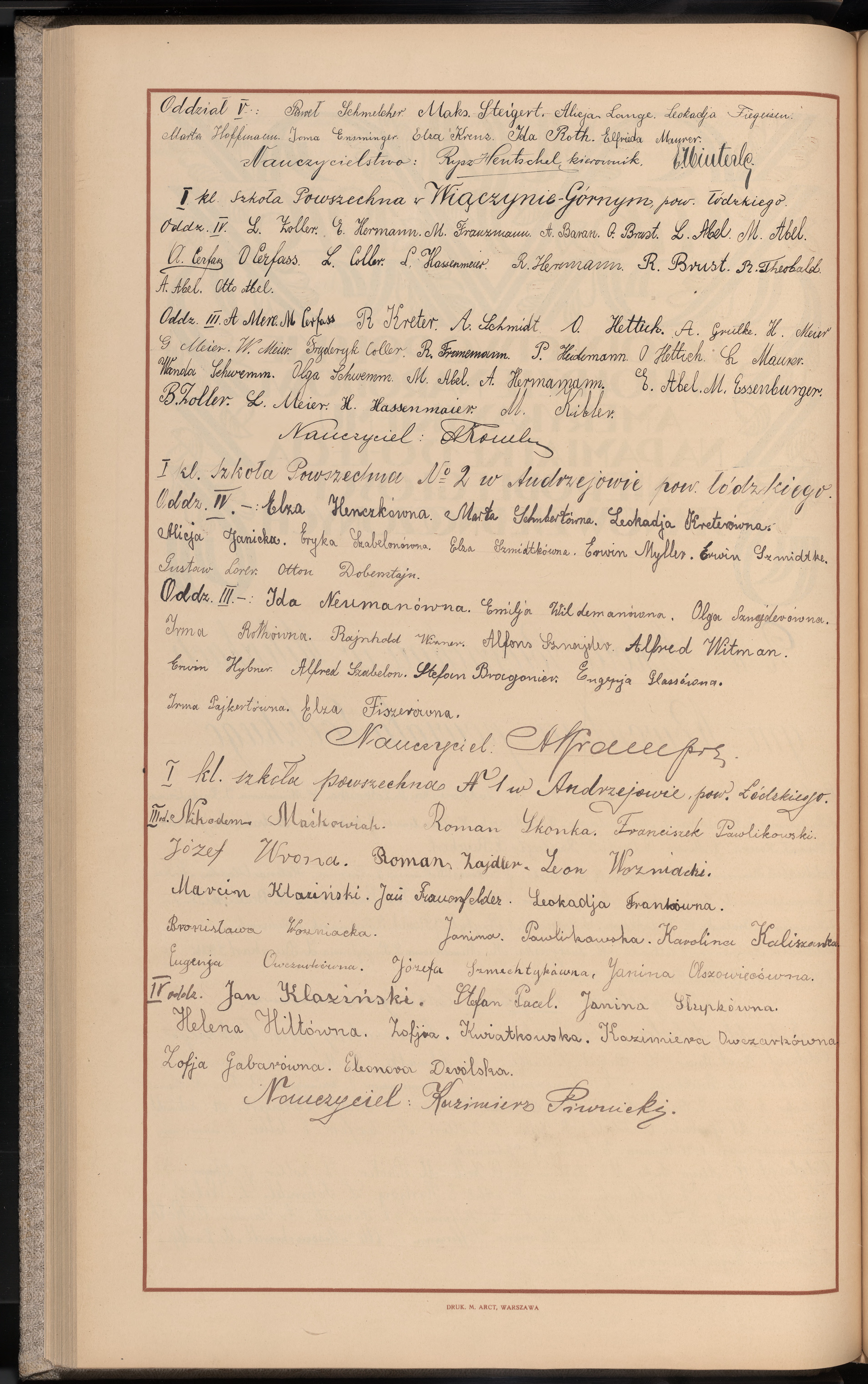 Jednoklasowa Szkoła Powszechna w Wiączynie Górnym; Jednoklasowa Szkoła Powszechna Nr 2 w Andrzejowie; Jednoklasowa szkoła powszechna Nr 1 w Andrzejowie