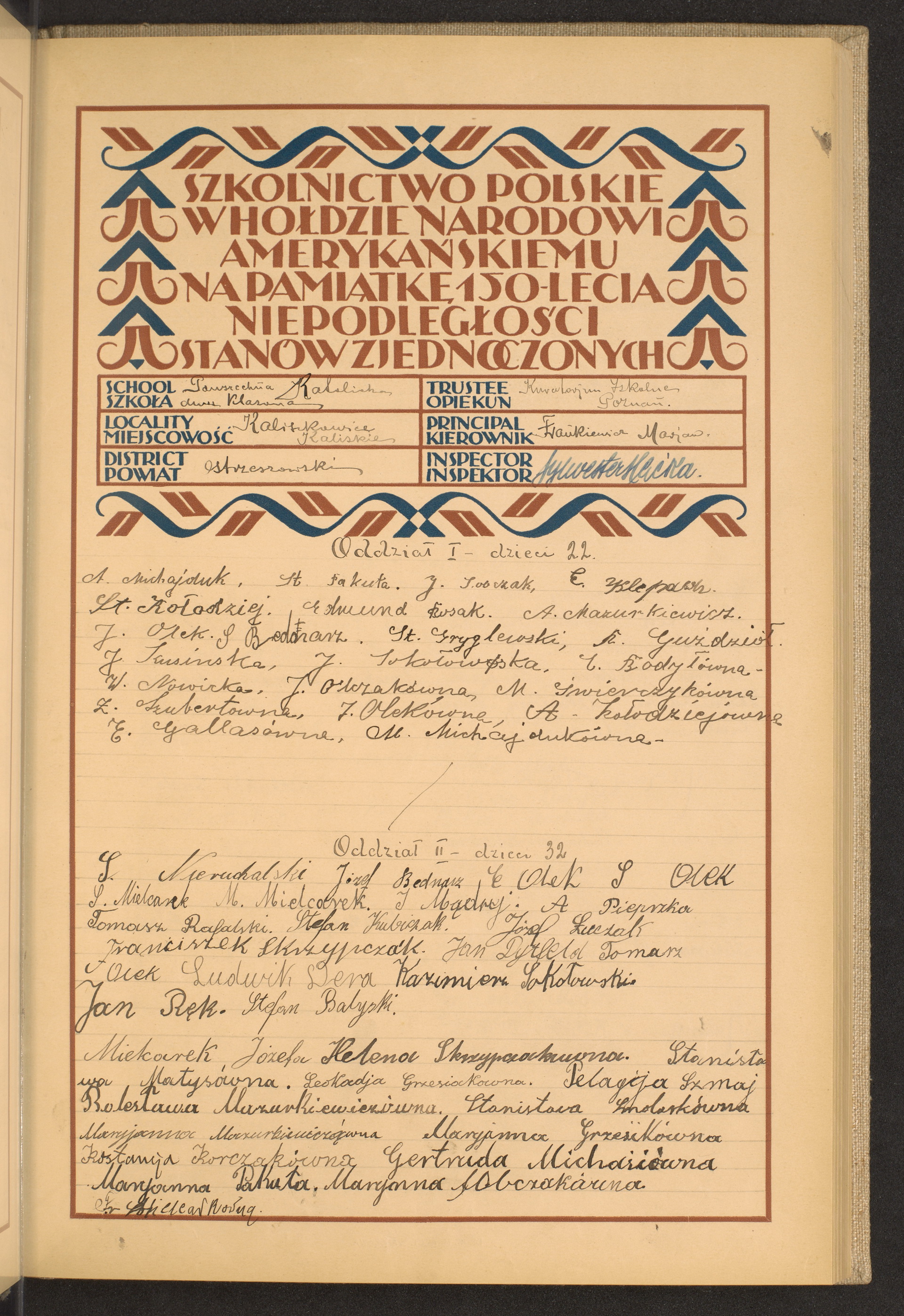 szkoły powszechne i gimnazja; powiaty Ostrów Mazowiecka - Oszmiana